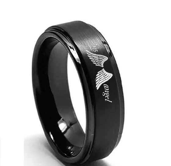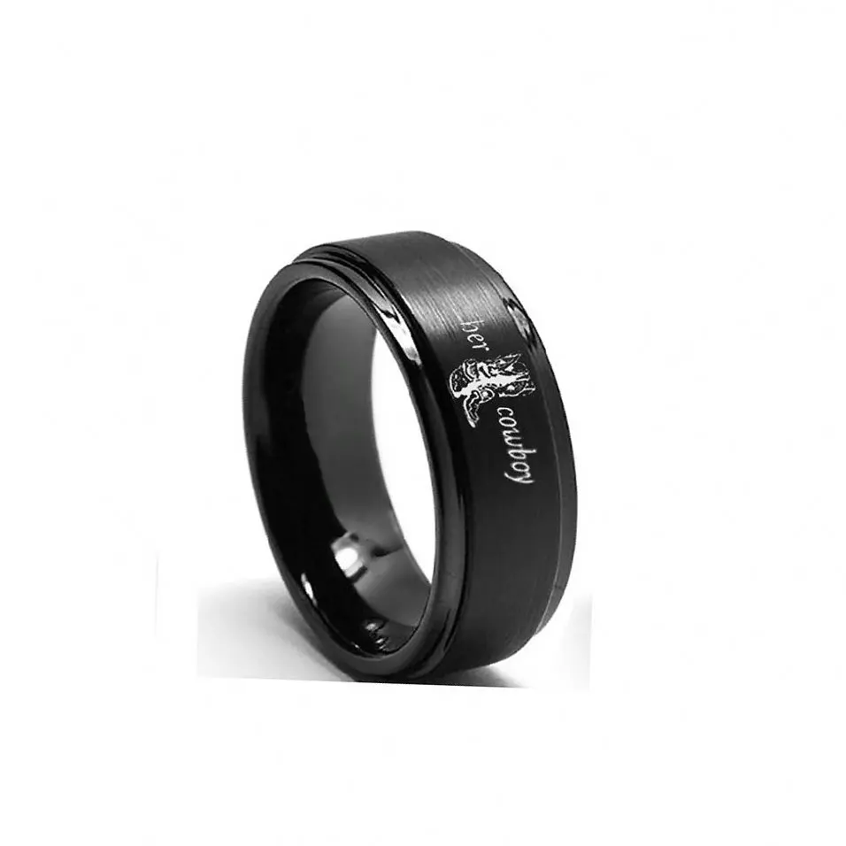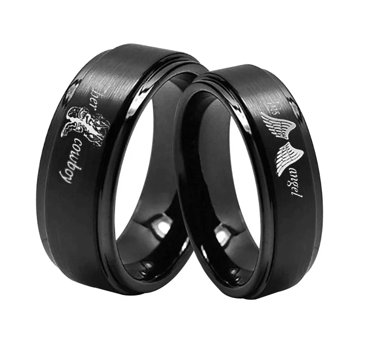 Черное кольцо для мужчин и женщин с гравировкой ангела, ее ковбой для свадьбы, помолвки, вечерние ювелирные изделия из нержавеющей стали