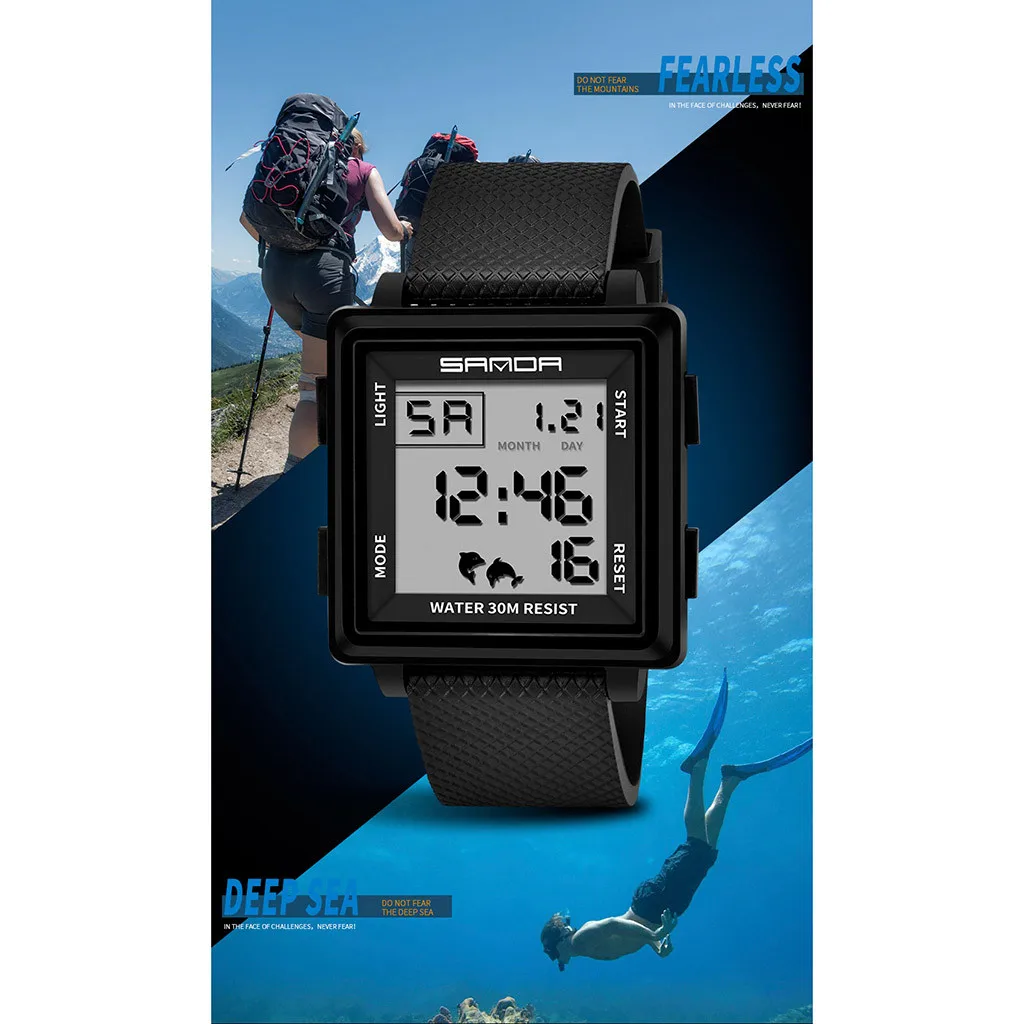 Классические модные часы с квадратным циферблатом, светодиодный ремень для пары, спортивные часы, электронные цифровые часы, подарки, мужские светящиеся часы для плавания