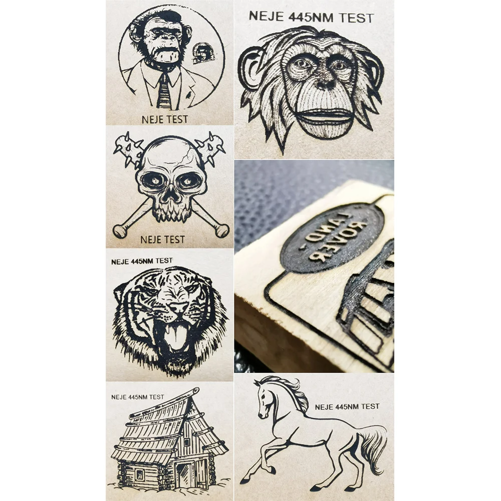 Оснащен 445нм лазерной трубкой, высокомощным лазером, TTL контролем, с датчиком температуры, безопасным и гравированным глубже.