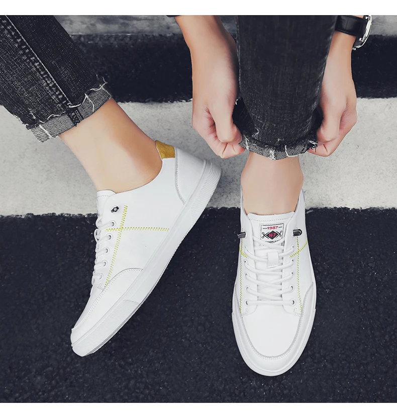 Модная мужская кожаная обувь Zapatillas Deporte Hombre; Цвет белый, желтый, красный; Дышащая Осенняя обувь из искусственной кожи без шнуровки в стиле хип-хоп; Мужские кроссовки; 39