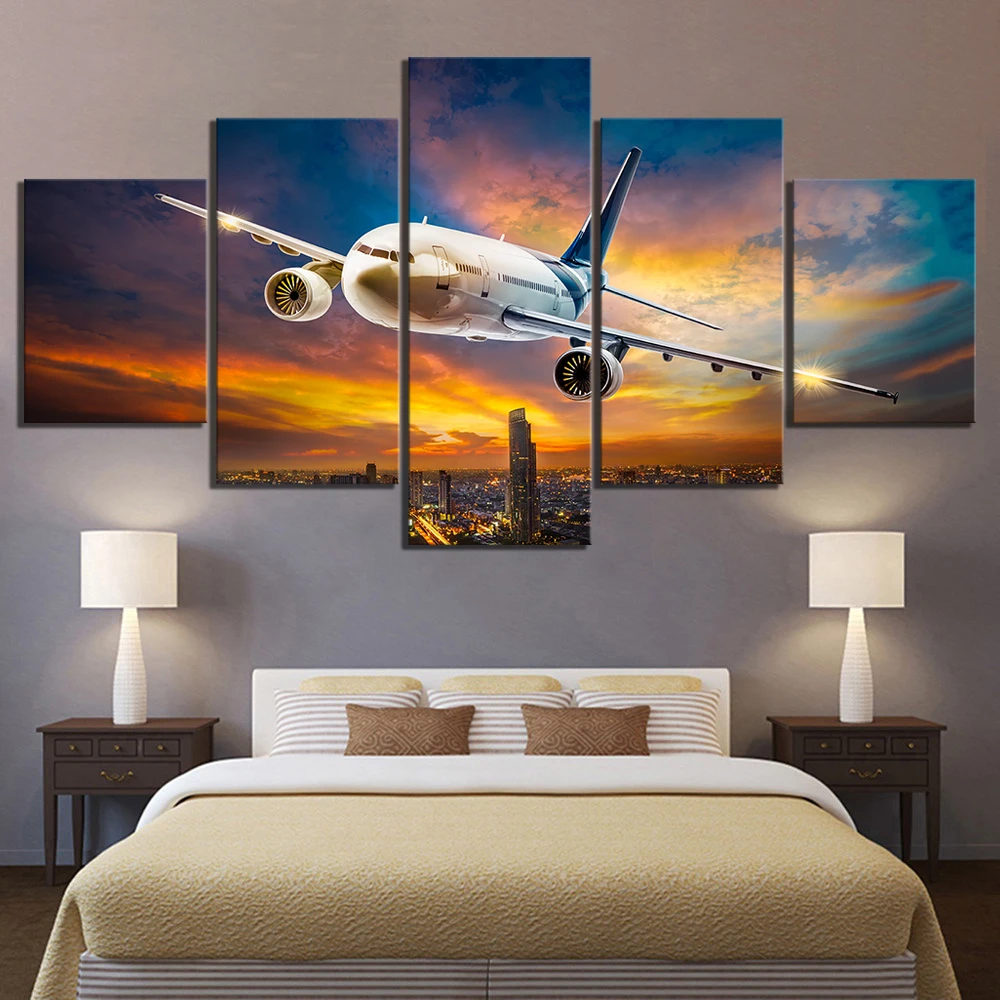 Modname = ckeditor5 шт. HD фантазия искусство холст картины самолет городской пейзаж ночной вид закат пейзаж настенные картины для домашнего декора