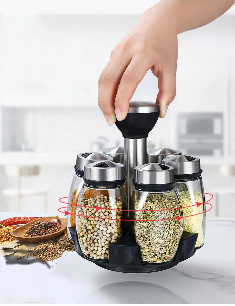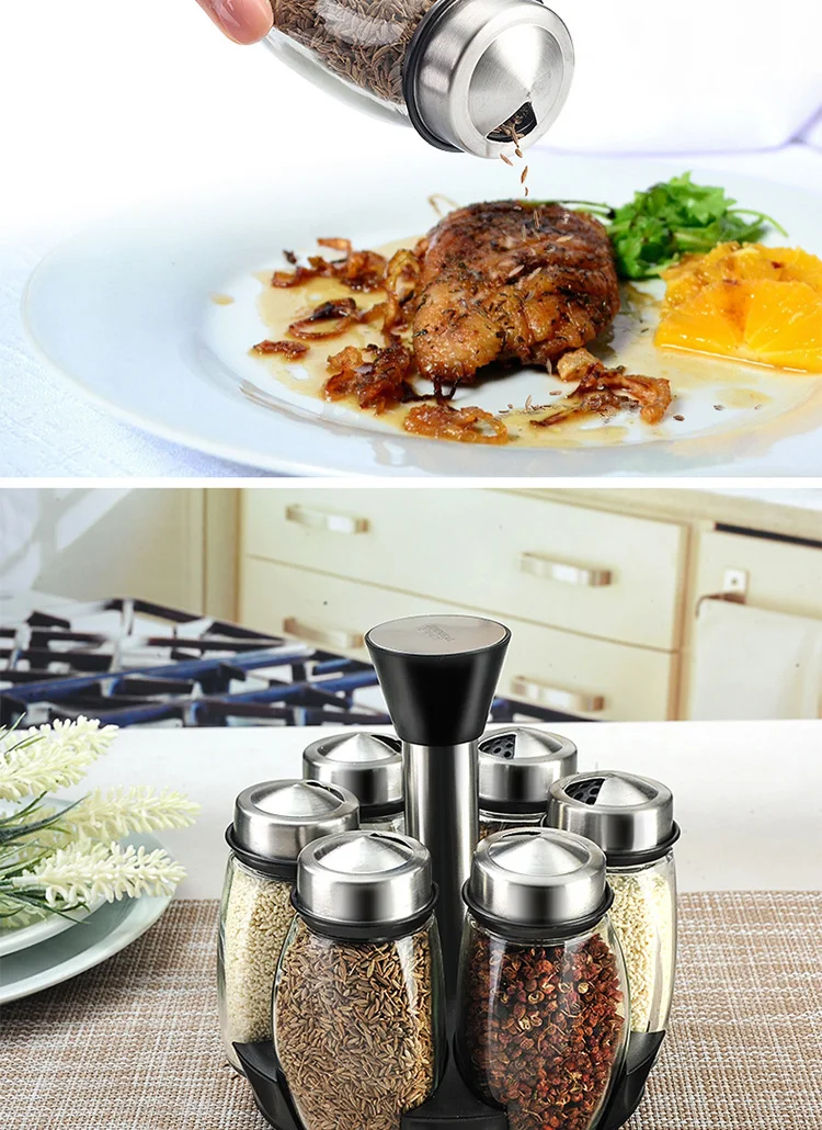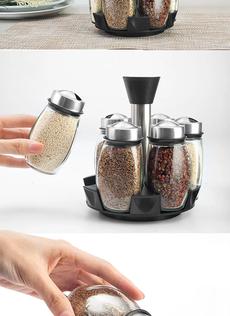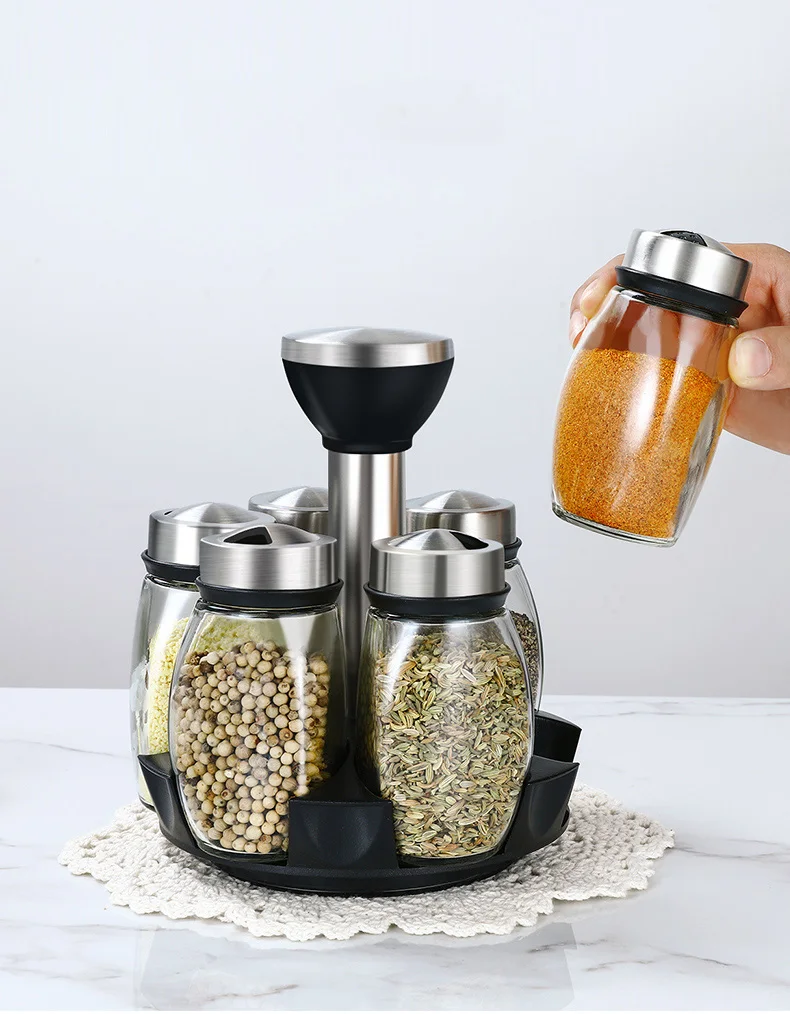 Кухонная стойка для специй, 6 шт., пластиковая подставка для перца, солонка, набор для приправ, набор для приправ с травами, полка для специй, бутылки, банка для специй, коробка для приправ