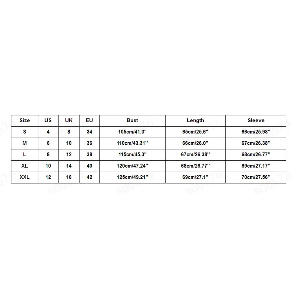 Размер Свяжитесь с нами Великобритания ЕС Обхват груди Длина Рукава S 4 8 34 105 см/41,3" 65 см/25,6" 66 см/25,98'' М 6 10 36 110 см/43,31'' 66 см/26,0" 67 см/26,38'' L 8 12 38 115 см/45,3" 67 см/26,38'' 68 см/26,77'' XL 10 14 40 120 см/47,24'' 68 см/26,77'' 69 см/27,17'' XXL 12 16 42 125 см/49,21'' 69 см/27,1" 70 см/27,56''