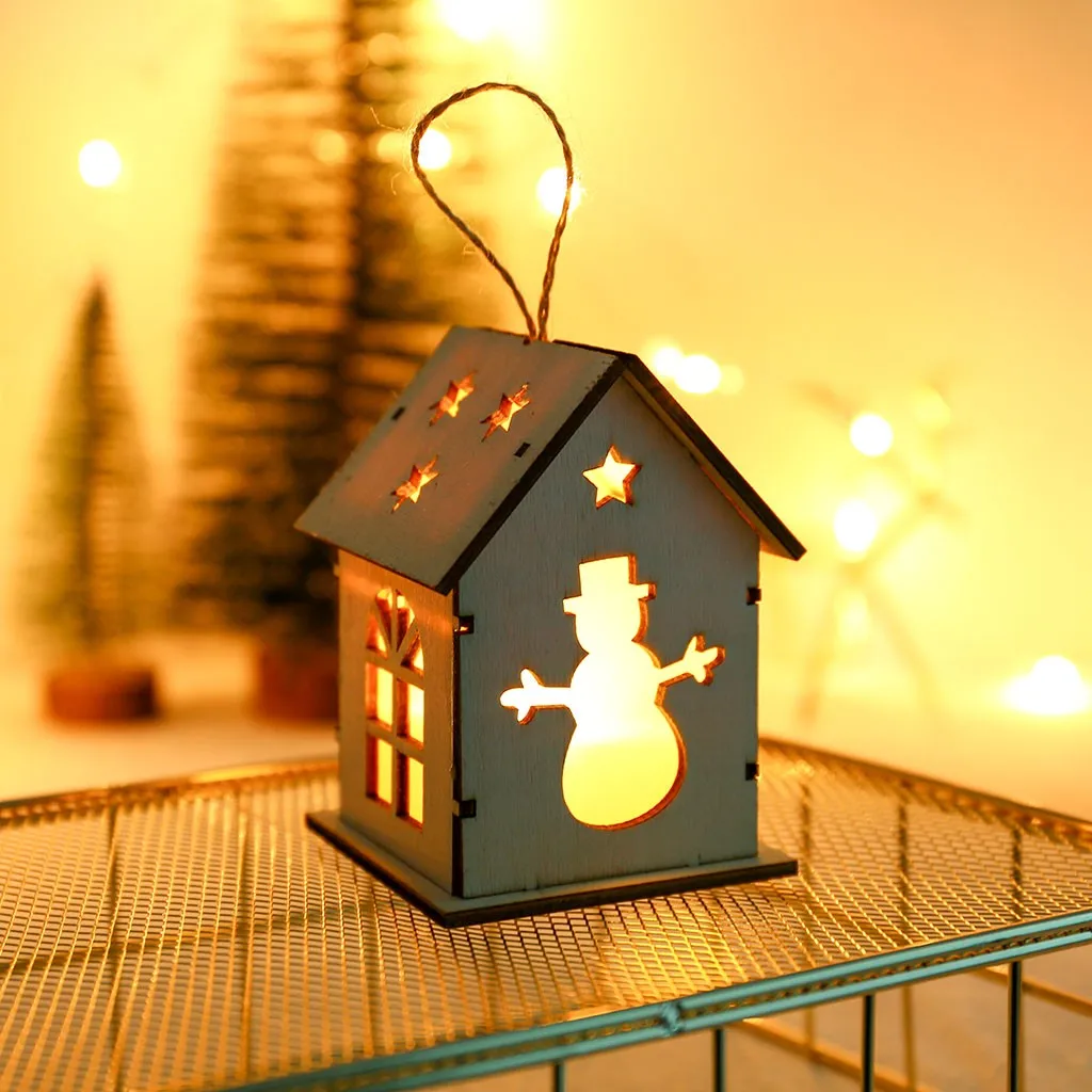 Маленький деревянный LED домик освещенная кабина для вечеринки Свадебные украшения Рождественская игрушка