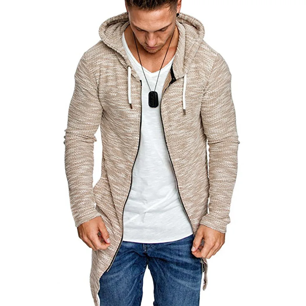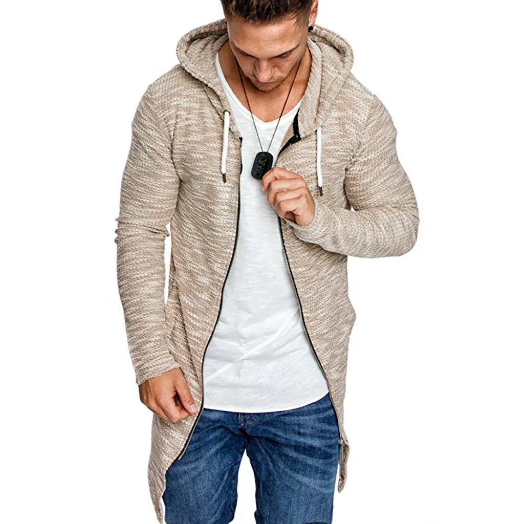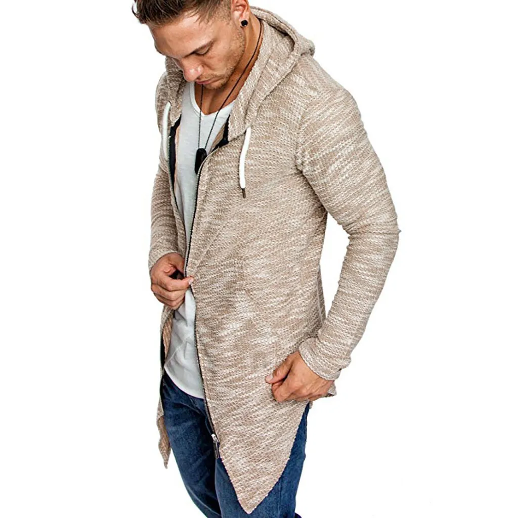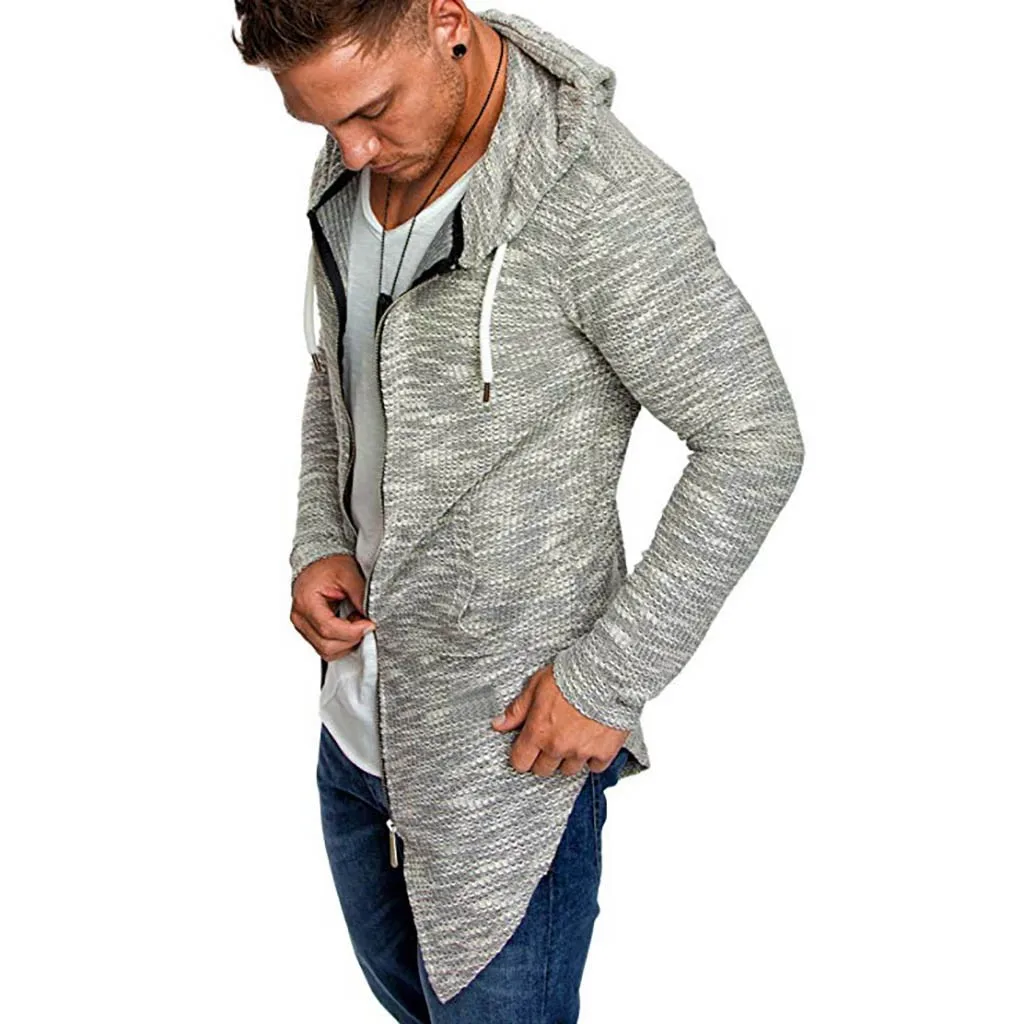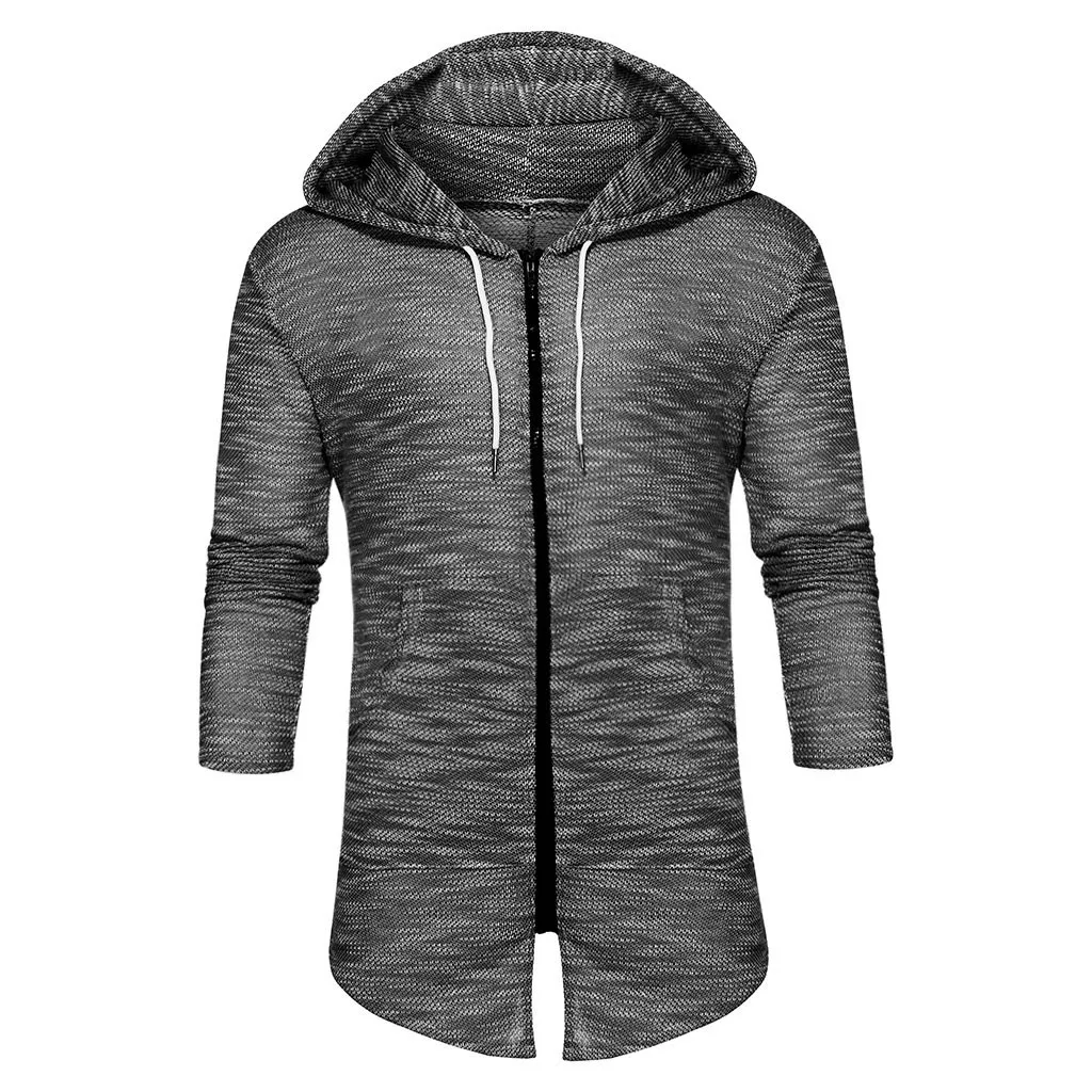 Мужчины сплайсинга с капюшоном сплошной Тренч куртка кардиган длинный рукав Верхняя одежда Блузка