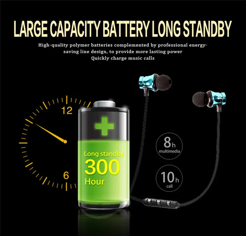 Встроенные магниты позволяют прикрепить два наушника вместе, когда они не используются, и носить их как ожерелье вокруг шеи, удобный способ носить их, когда они вам не нужны.Эргономичные наушники в ушах Специально подходят для контуров ваших ушей и 10-метрового рабочего расстояния, наши спортивные наушники позволят вам наслаждаться музыкой во время бега, в тренажерном зале, спорт и упражнения и другие виды деятельности.Технология Bluetooth 4,2, простое и быстрое сопряжение со смартфонами, планшетами и другими музыкальными устройствами с поддержкой Bluetooth и предоставление высококачественного стереозвука для совместимых устройств.Совместимость с 99% мобильными телефонами, планшетами, ноутбуками с поддержкой Bluetooth и другими цифровыми устройствами на рынке.Количество электроэнергии наушников может быть отображено на устройствах iOS и для телефонов Xiaomi. Поддержка автоматического обратного подключения.Есть интеллектуальная английская Голосовая подсказка при включении/выключении питания, сопряжении, отключении Bluetooth, низком электричестве.Характеристики:Тип: стерео bluetooth-гарнитураВерсия Bluetooth: Bluetooth V4.2Цвет черный, синий, золотой, серебристыйЕмкость аккумулятора 75 мАчВремя зарядки 1,5 часаВремя работы в режиме разговора 3-4 часаВремя прослушивания музыки ≥ 5 часовВремя работы в режиме ожидания ≥ 60 часовЧип ДжерриЗарядный вход Стандартный DC-5V/1AЧастота Bluetooth 2,402 ГГц-2,480 ГГцЛучшее расстояние вызова ≤ 10 смБеспроводное расстояние Bluetooth ≤ 10 мВес упаковки 26 гКомплектация: