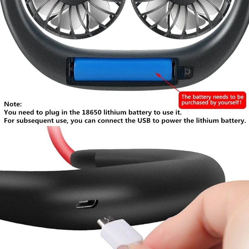 * Двойная ветровая головка: портативный вентилятор имеет две ветряные головки, может чувствовать себя более мощным воздушным потоком, вы можете носить его на шее, а также может положить его на рабочий стол.