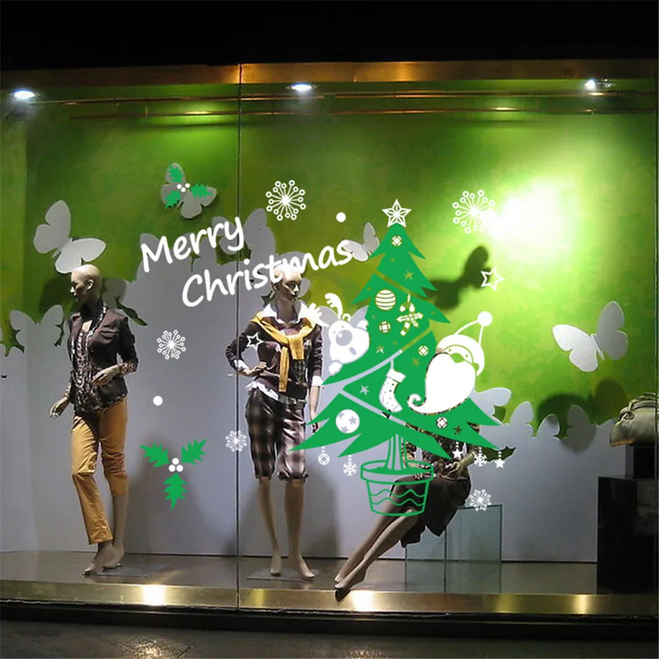 Современные рождественские украшения на стены гостиной детской стены наклейки дерево окна обои Рождественское украшение для дома DIY наклейки