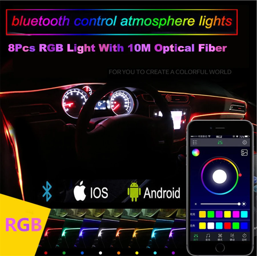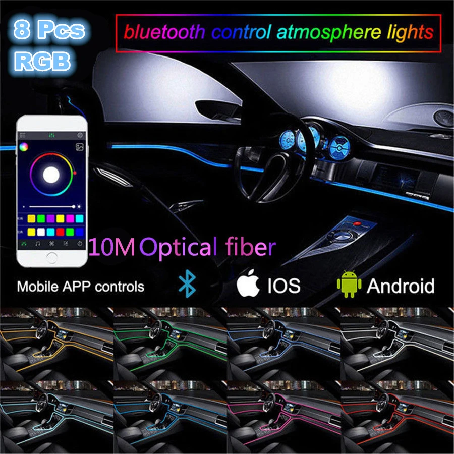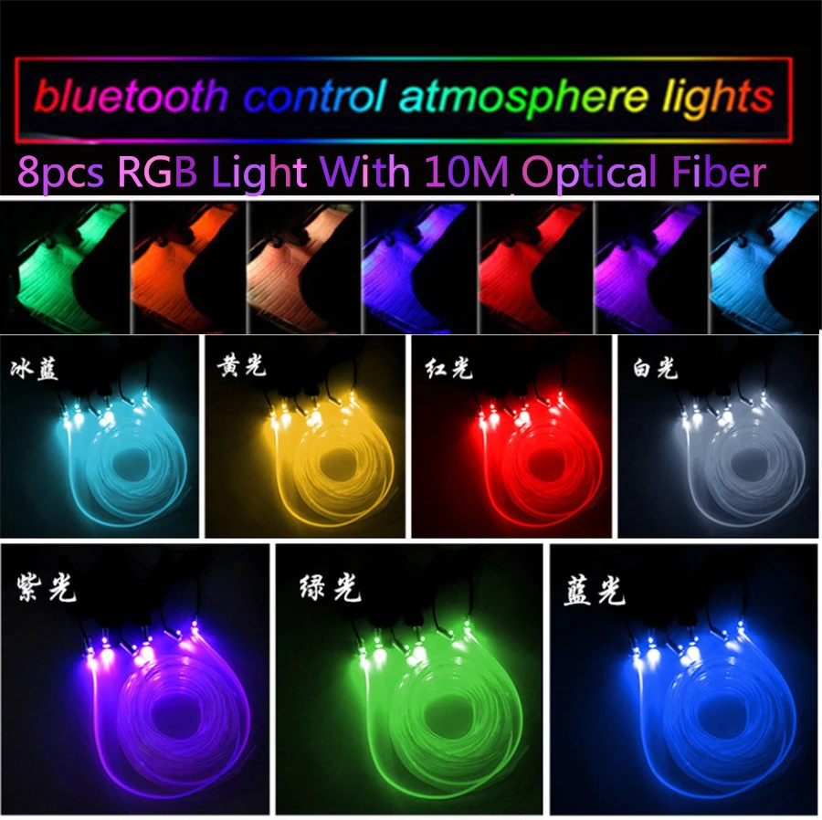 10 м RGB волоконно-оптические атмосферные лампы 8 источник лампы Автомобильный внутренний окружающий светильник декоративная приборная панель управление через приложение