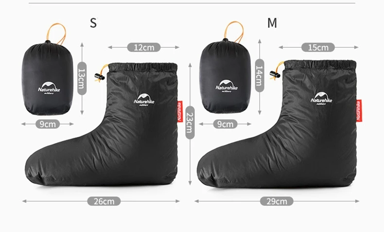 Цвет: черный Размер S: 23x12(26 см)/80 г Размер L: 23x15(29 см) 80 г Размер упаковки: S(13x9 см)/L(14x9 см) Внешняя сторона ткани: 20D 400T нейлон Внутренняя сторона ткани: 20D 400T нейлон Наполнитель: S:10 г 90% гусиный пух/L:20 г 90% гусиный пух