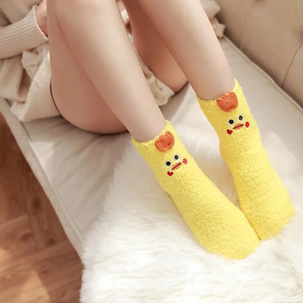 Теплые носки для сна с героями мультфильмов; рождественские чулки; махровые носки-тапочки; бархатные носки кораллового цвета