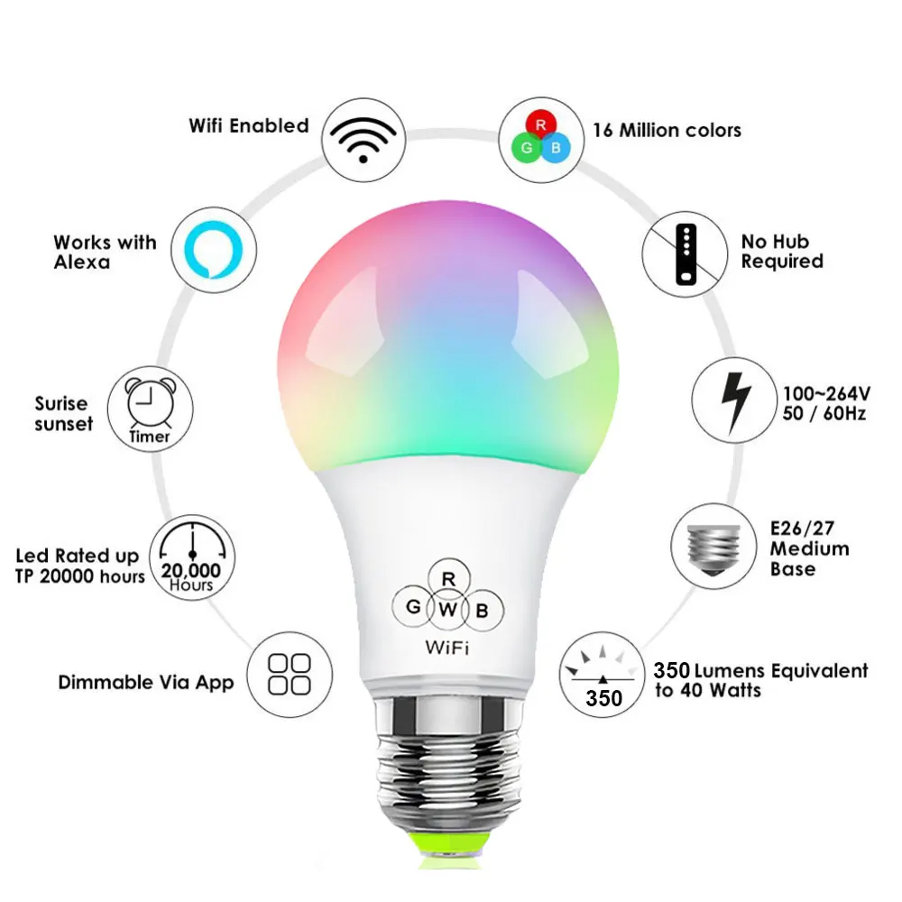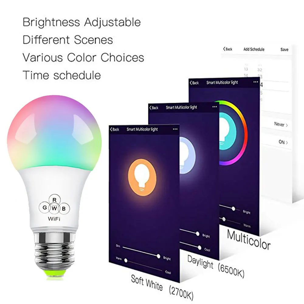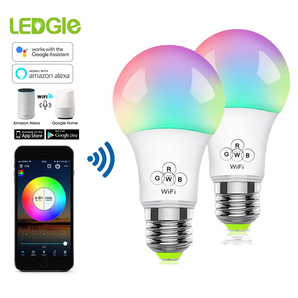 E27 Wifi умная лампа с регулируемой яркостью Светодиодная лампа 7 Вт 9 Вт E27 приложение управление Alexa Google Assistant управление Пробуждение умная лампа Ночной светильник