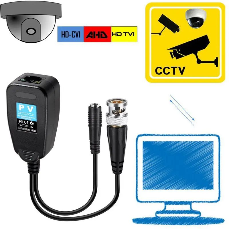 Посылка включает в себя: 2 x HD CCTV CVI/TVI/AHD Видео балун с разъемом питания и RJ45 CAT5 передатчик данных