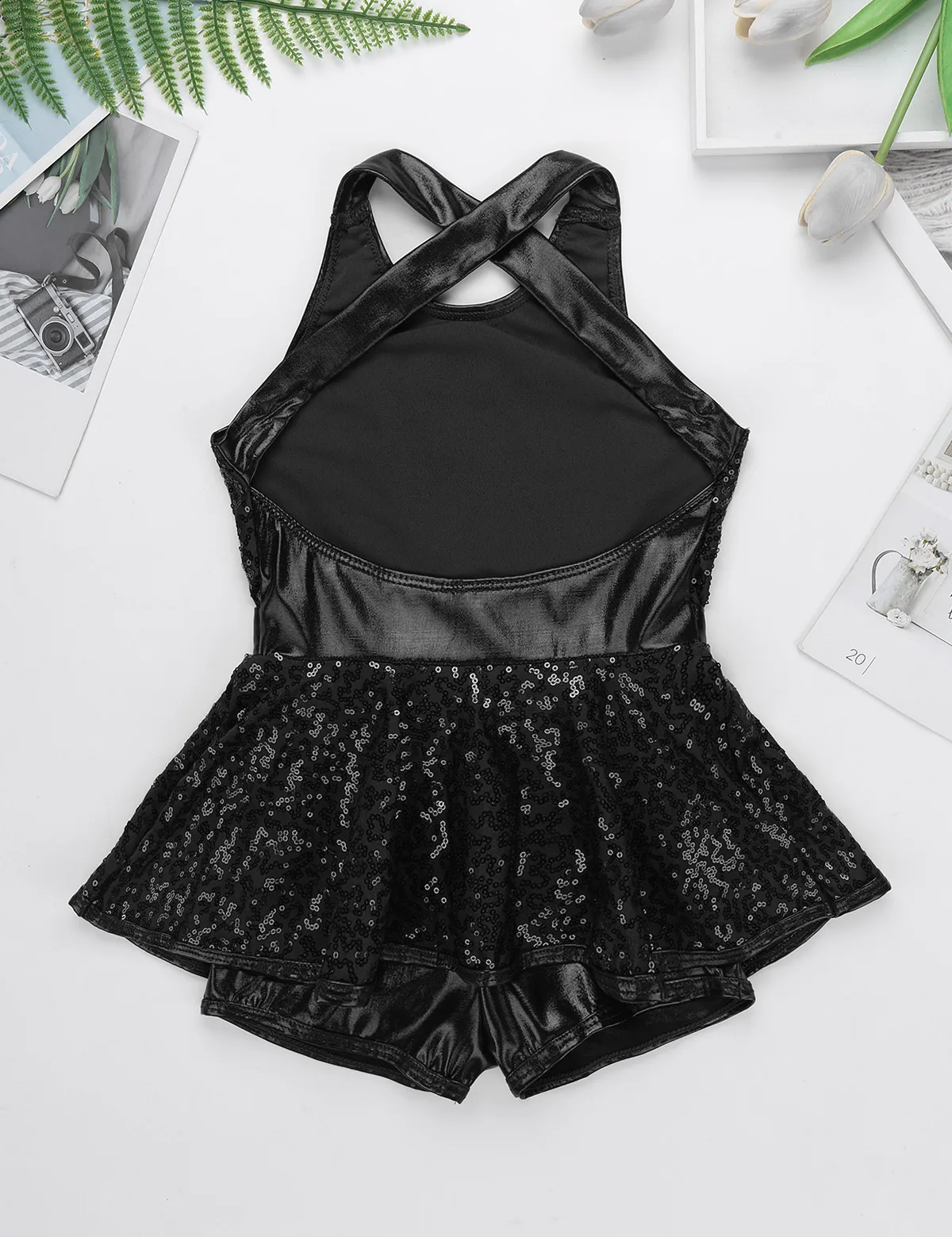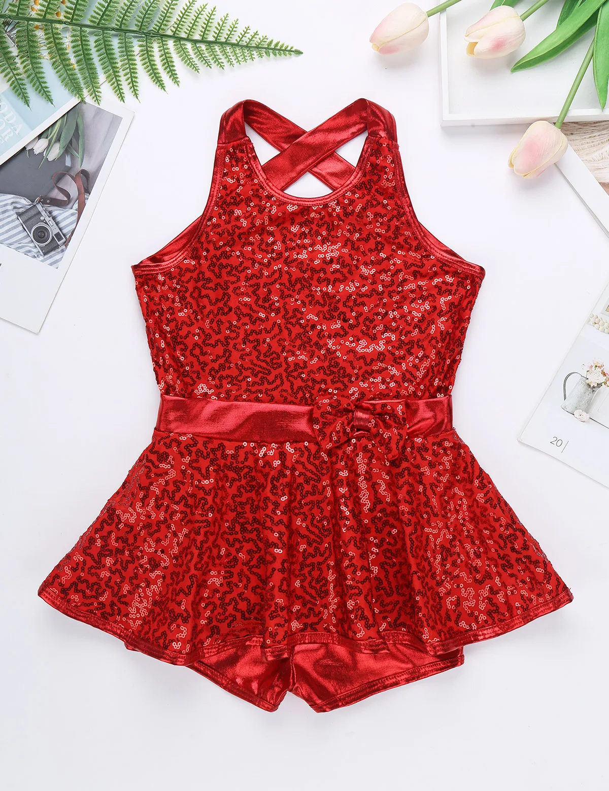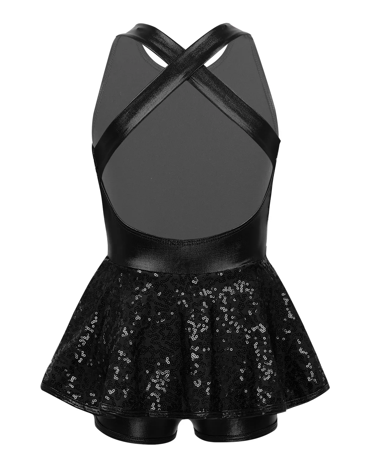 Танцевальное трико платье изготовлено из полиэстера и пайеток, ручная стирка .. Falda de peplum con lentejuelas de 1 capa unida a la cintura. Pantalones cortos metallicos increados. Ropa de baile elegante, hermosa y brillante para tu chica .. Sin mangas, escote redondo, espalda abierta con tirantes cruzados. El corpiño Улучшенный esta decorado con lentejuelas brillantes. Без банта cosido en la cintura .. Adecuado para clase de baile, ejercicio gimnаstico, actuación escénica и т. Д. Tabla de tallas signia rangos de edad para las niñas, pero son solo para orientación general,lavado a mano ..