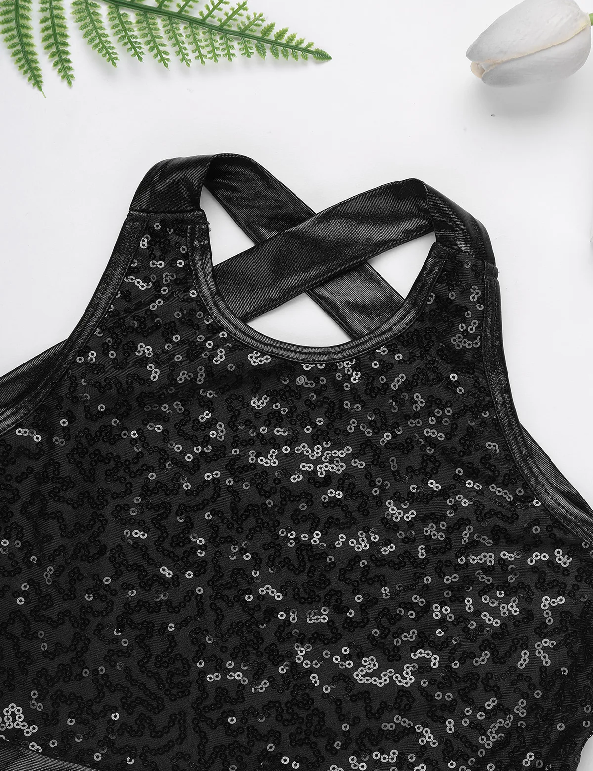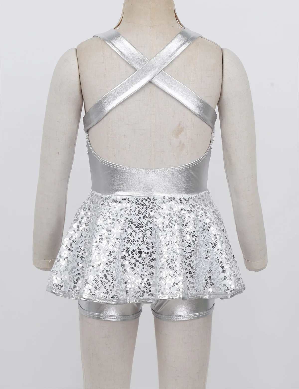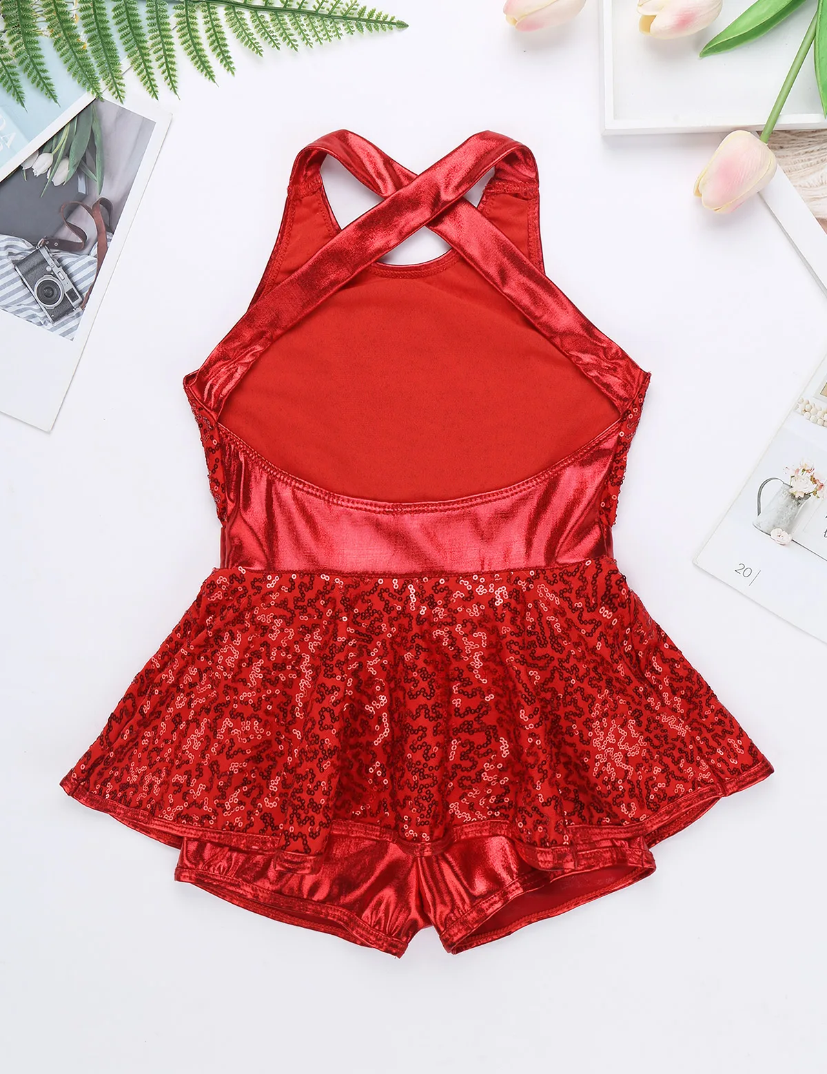 Танцевальное трико платье изготовлено из полиэстера и пайеток, ручная стирка .. Falda de peplum con lentejuelas de 1 capa unida a la cintura. Pantalones cortos metallicos increados. Ropa de baile elegante, hermosa y brillante para tu chica .. Sin mangas, escote redondo, espalda abierta con tirantes cruzados. El corpiño Улучшенный esta decorado con lentejuelas brillantes. Без банта cosido en la cintura .. Adecuado para clase de baile, ejercicio gimnаstico, actuación escénica и т. Д. Tabla de tallas signia rangos de edad para las niñas, pero son solo para orientación general,lavado a mano ..