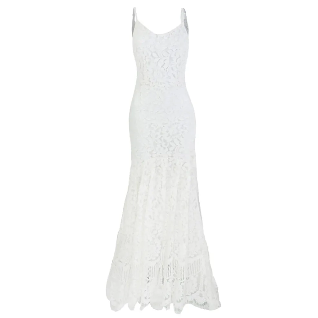 Женское кружевное ажурное платье без рукавов, Длинные вечерние свадебные платья
