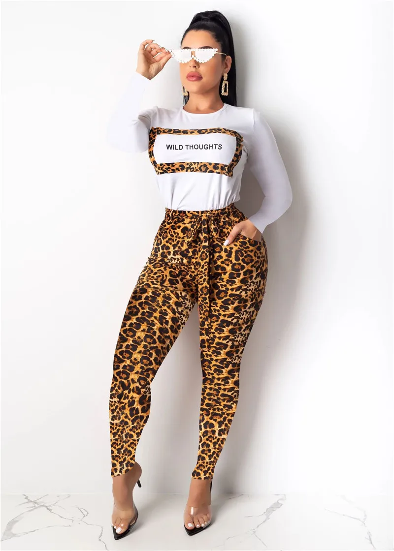 Женский Повседневный комплект из двух предметов с леопардовым принтом Adogirl, футболка с длинным рукавом и круглым вырезом, топ с галстуком-бабочкой и карманами, брюки-карандаш, модный костюм