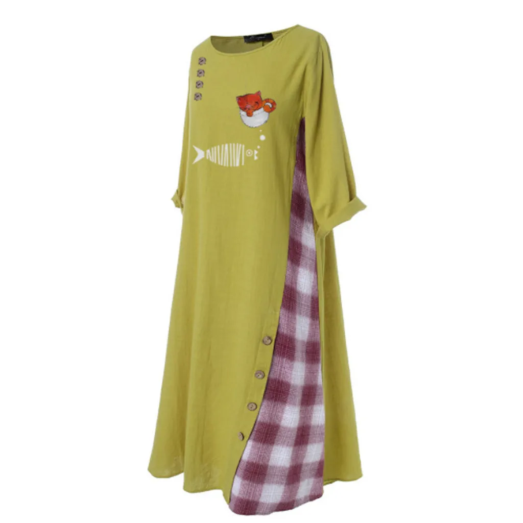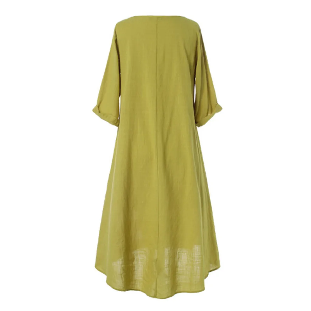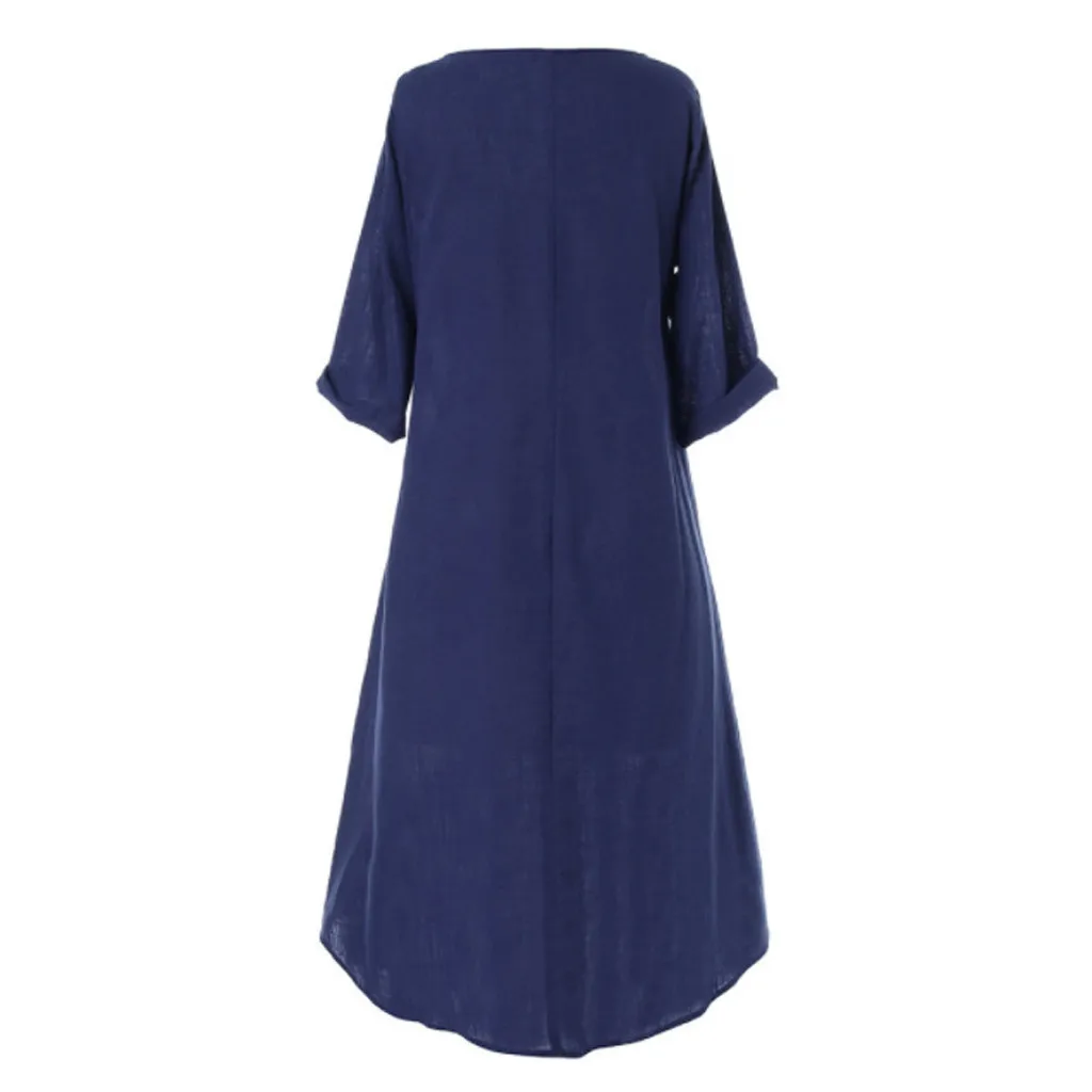 Женское Повседневное платье размера плюс из хлопка и льна с принтом, о-образным вырезом и карманами