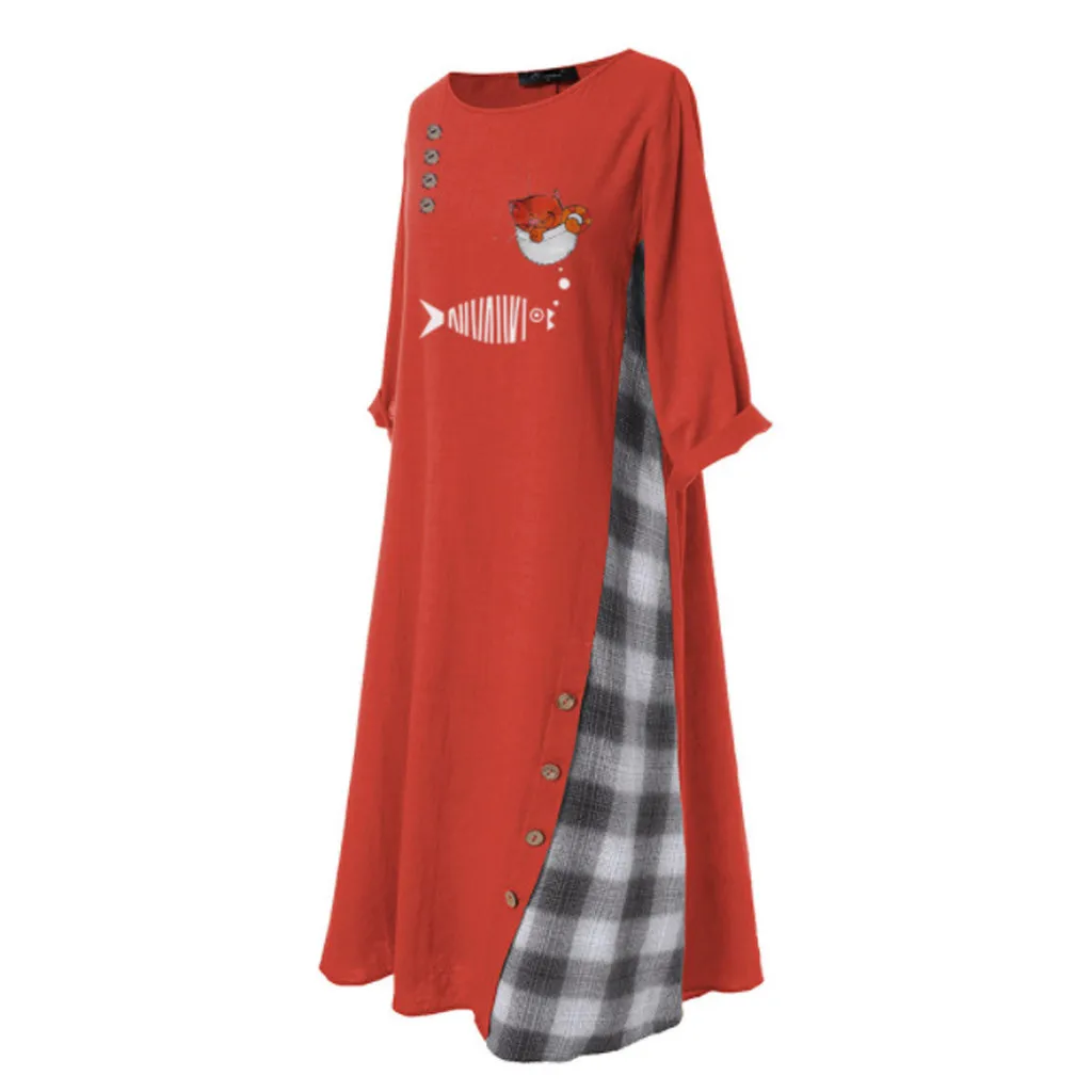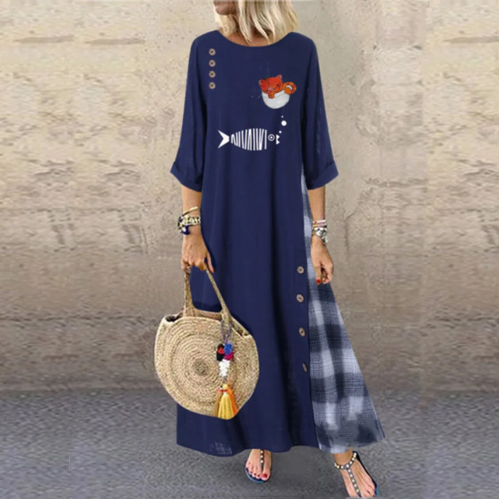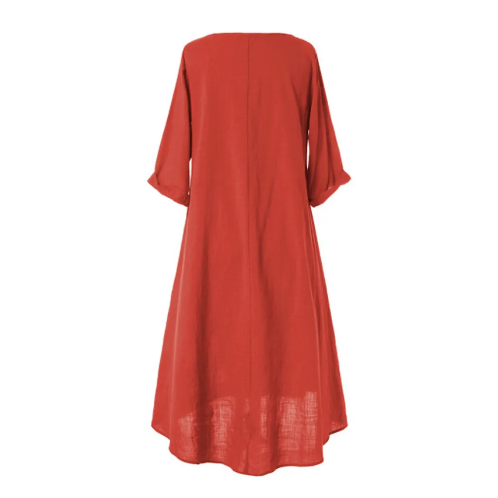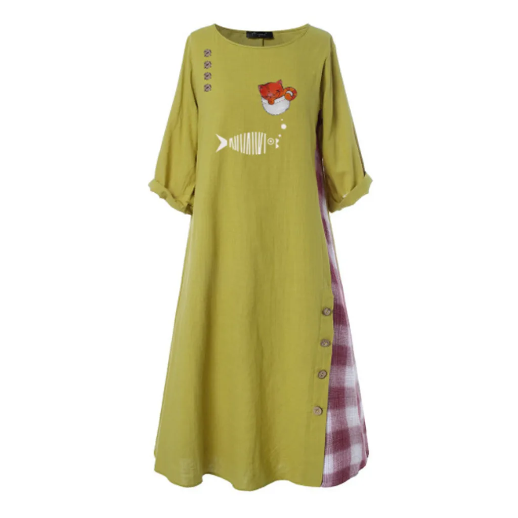 Женское Повседневное платье размера плюс из хлопка и льна с принтом, о-образным вырезом и карманами