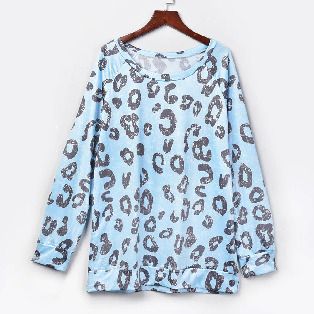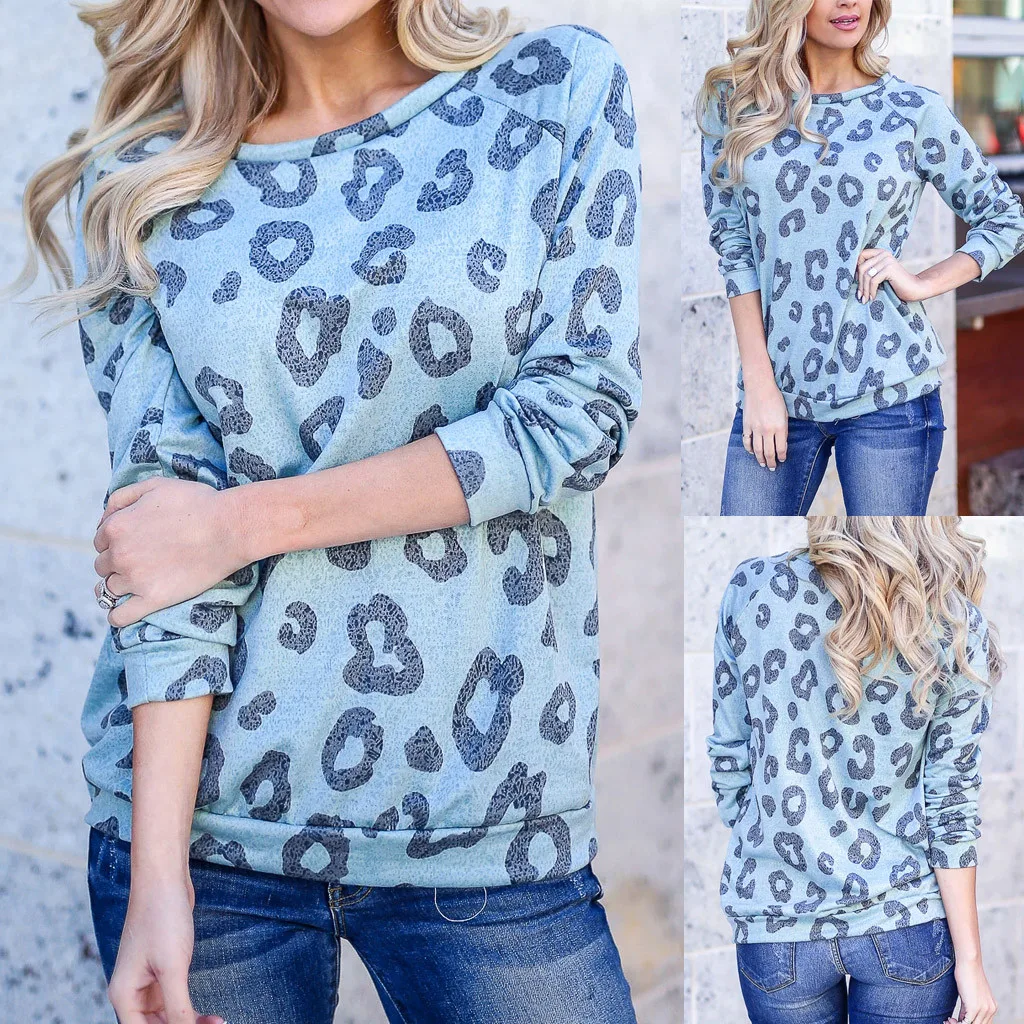 Модная женская толстовка с круглым вырезом и длинными рукавами с леопардовым принтом
