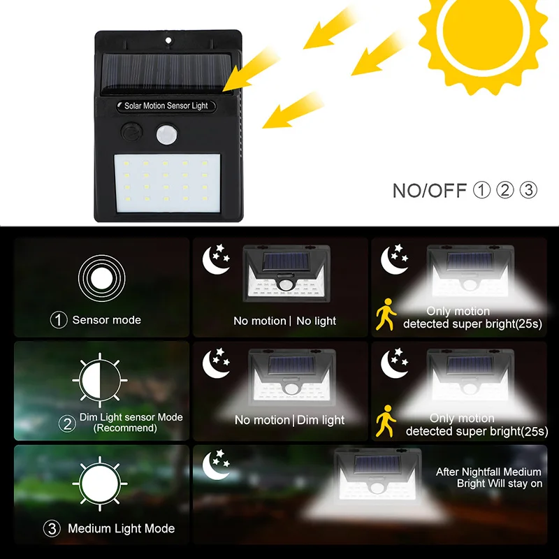 Солнечный свет включится в темноте. Нет необходимости управлять кнопкой света вручную