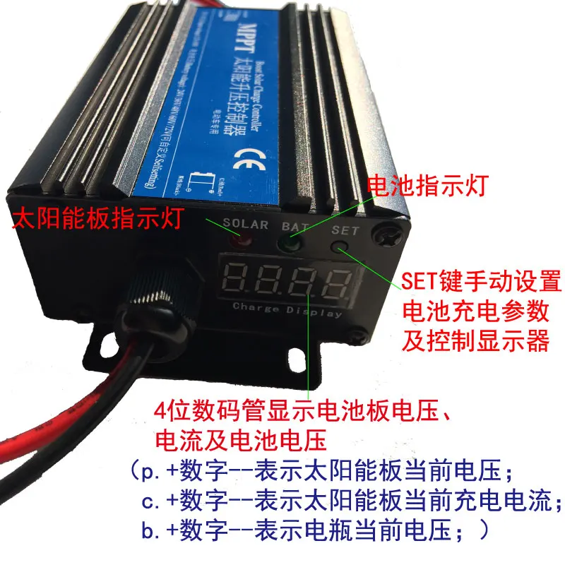 Этот контроллер заряда солнечной батареи требует напряжения солнечной панели ниже напряжения батареи, мощность панели батареи меньше, чем 300 Вт, например, для подзарядки аккумулятора (батареи) 48 В, лучший use36Vor30V, это также могут быть used18V батареи панели, если напряжение панели батареи выше, чем напряжение батареи, советники должны принять понижающий контроллер зарядки.