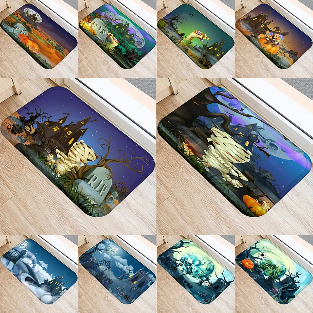 Хэллоуин страшный замок тыквы гробницы водопоглощение нескользящий коврик для ванной