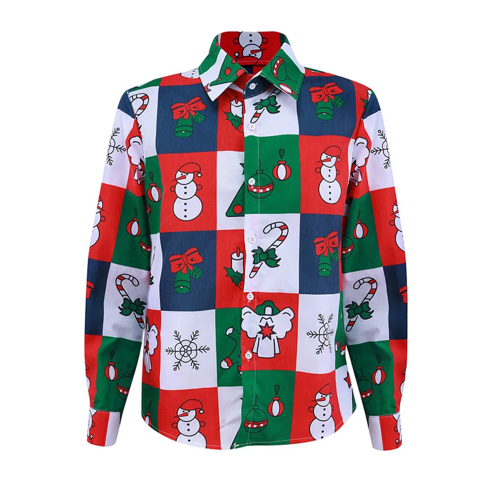 Лоскутная веселая Рождественская Мужская рубашка с принтом снеговика, рождественские мужские рубашки, длинная уличная весенне-осенняя верхняя блузка Chemise Homme