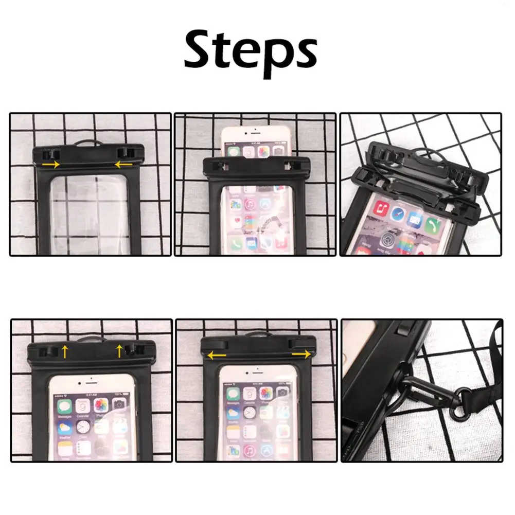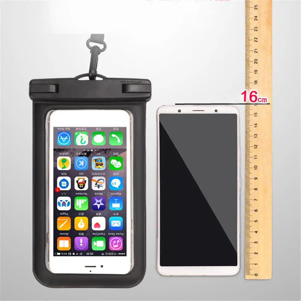 IPX8 Водонепроницаемая сертификация, 30 метров глубина водонепроницаемый. Принимая экологически чистый и прозрачный материал из ПВХ, высокая перспектива фото эффект ясен и сенсорный экран чувствителен.Мобильный сумка для телефона * 1
