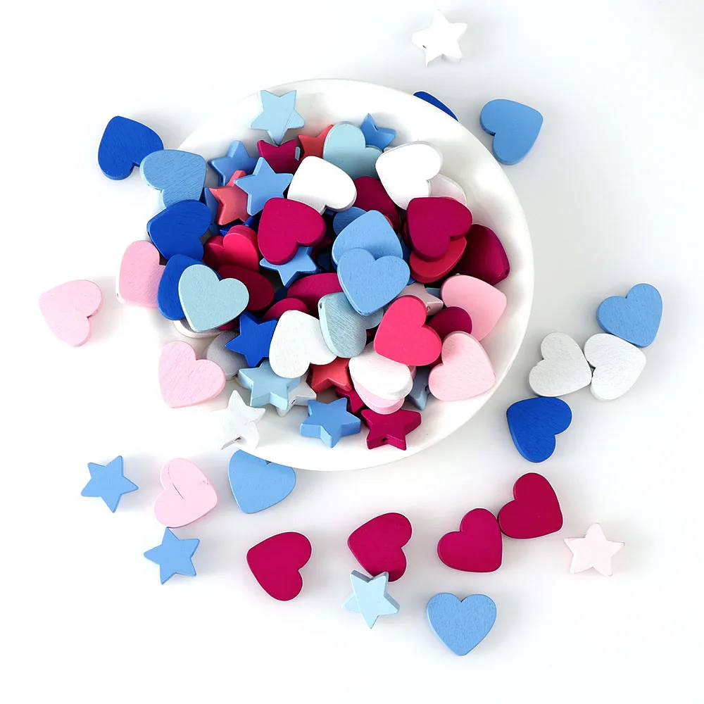 25 шт. экологическая Звезда Сердце Смешанные цвета деревянные бусины для сосок зажимы делая деревянные бусины в бусинах