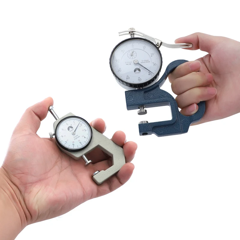 Измеритель толщины может использоваться для измерения плоских предметов, таких как кожа, бумага и лист.