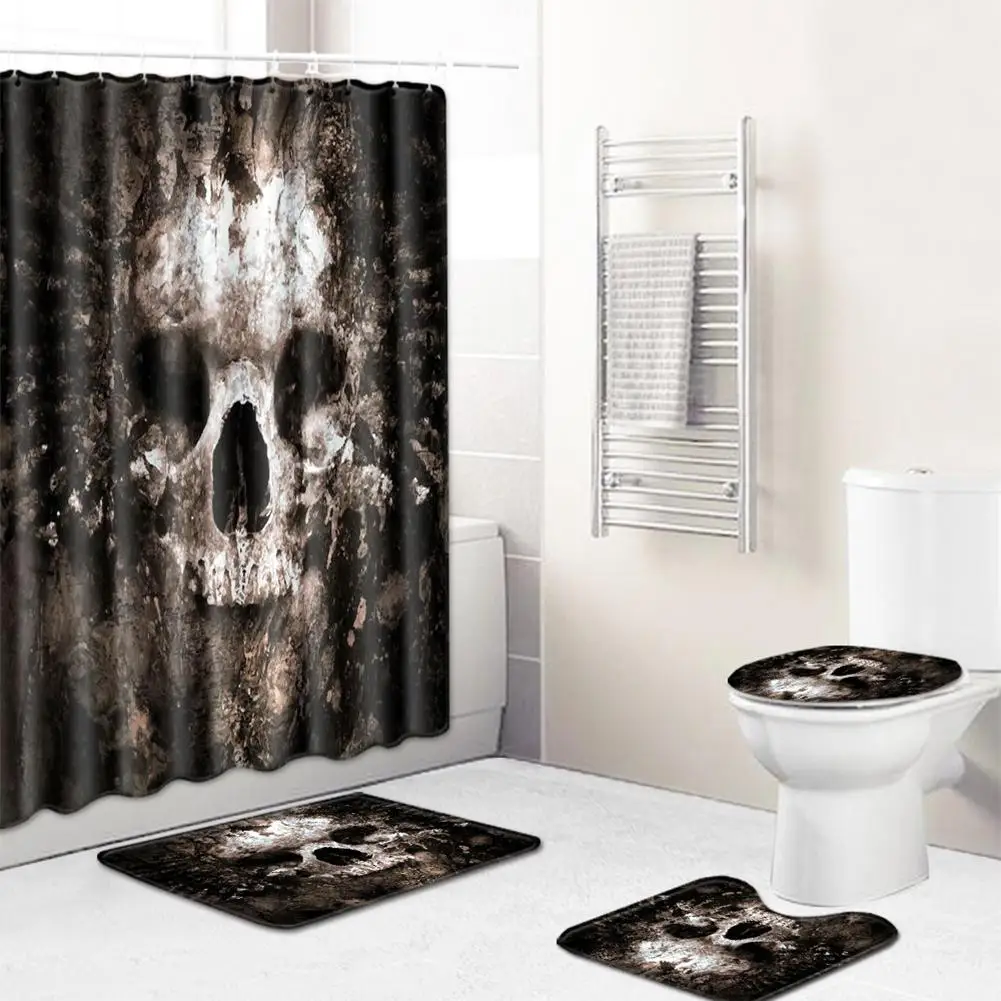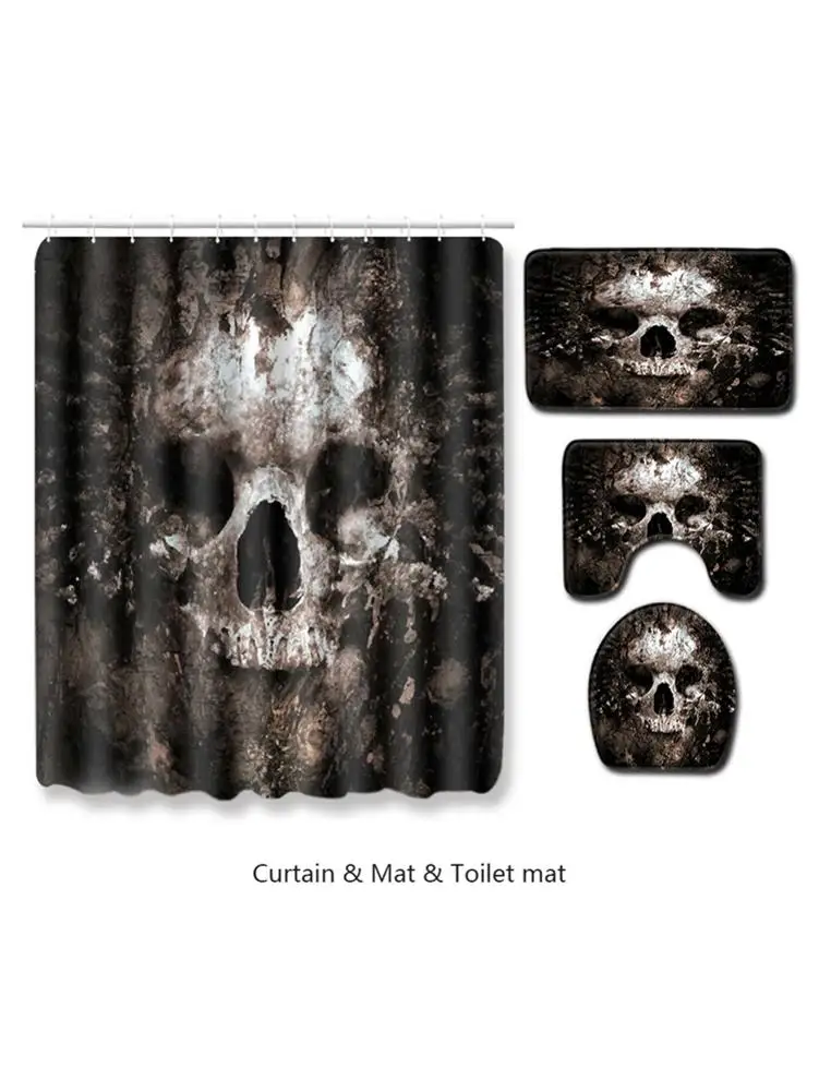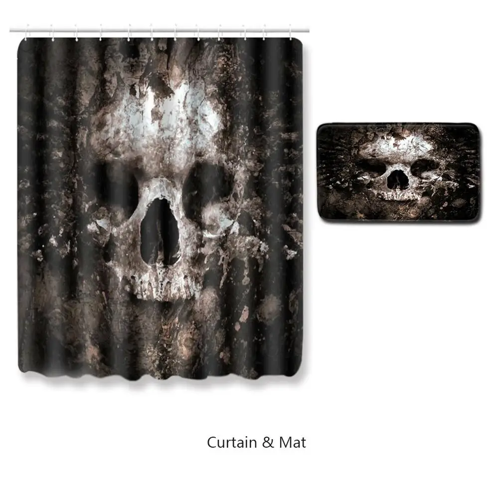 Череп Хэллоуин занавеска для душа и коврик для ванной набор Мода и Ретро занавеска для душа Водонепроницаемая полиэфирная ткань для ванной комнатыИскусство для ванной