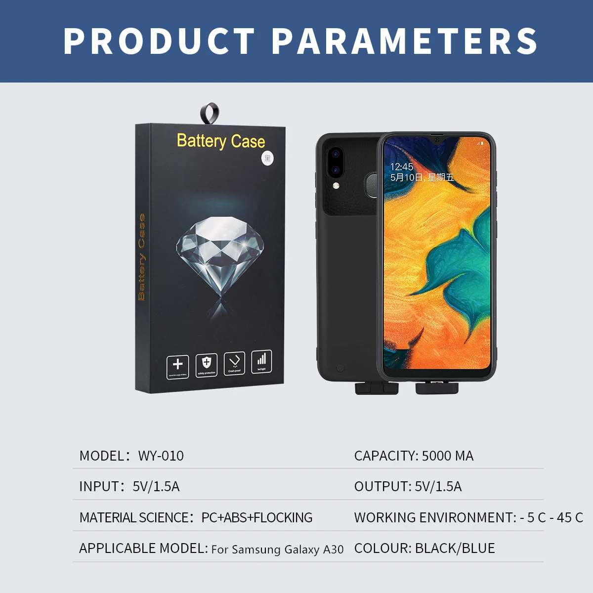 Высокое качество литий-ионный полимерный аккумулятор Входной ток: DC 5V-1.5A Выходной ток: DC 5V-1.5A Рабочая температура: 0c-45c Запас/температура транспортировки: -20c -+ 50c Срок службы более 500 раз Интеллектуальный IC может эффективно избежать короткого замыкания Чехол для аккумулятора Samsung Galaxy A30 Чехол для зарядного устройства Samsung Galaxy A30 Чехол для Samsung Galaxy A30 power Чехол для зарядного устройства Samsung Galaxy A30 Чехол для Samsung Galaxy A30 с внешним зарядным устройством