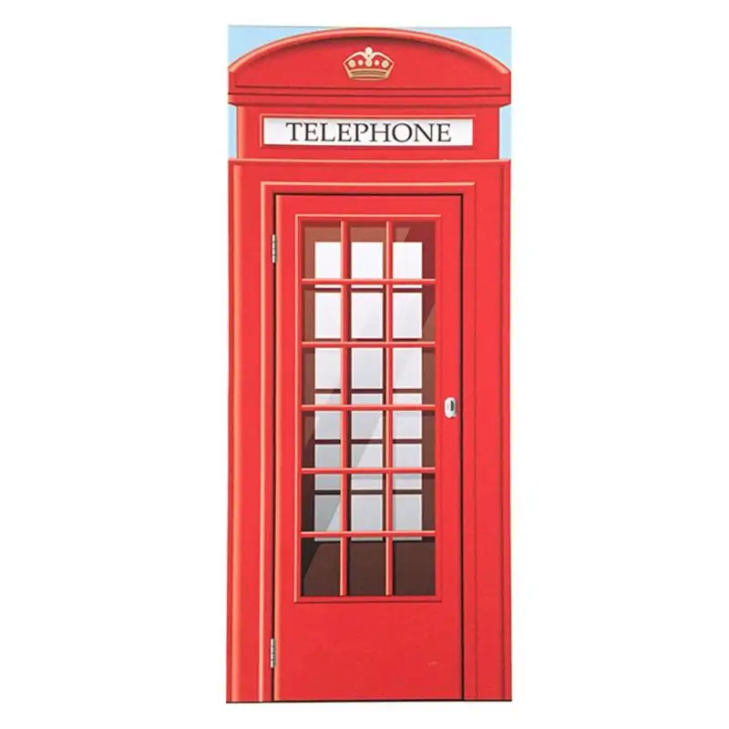 В британском лондонском стиле красный телефон стенда двери Стикеры самоклеющиеся ПВХ водонепроницаемый домашний декор плакат наклейки