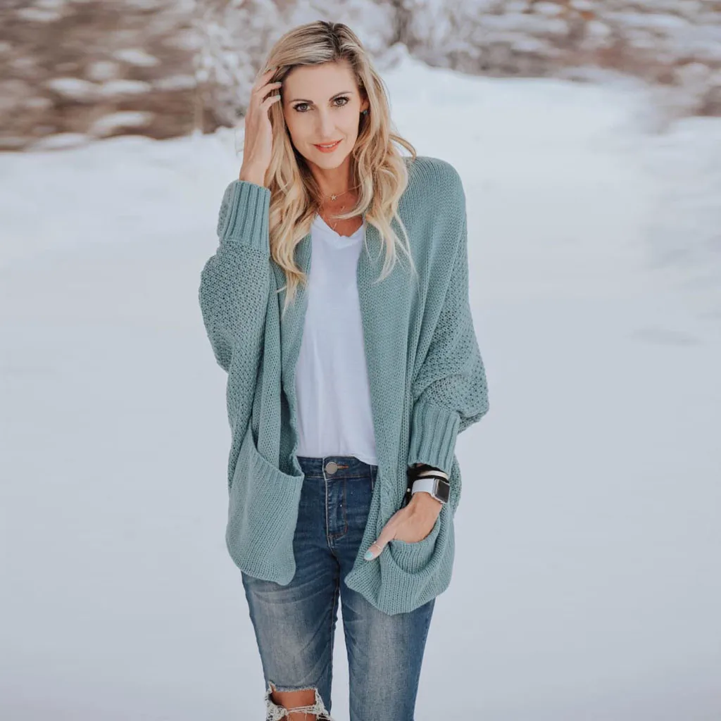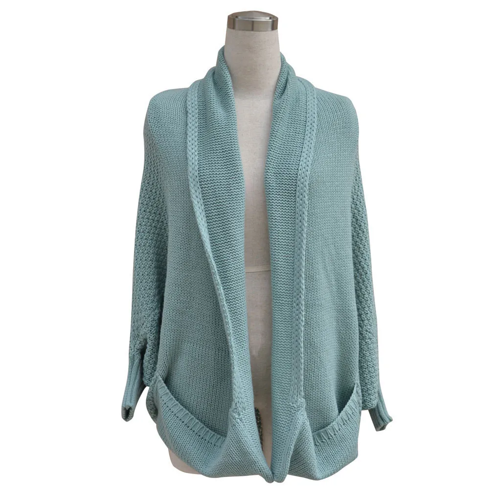Женский Теплый длинный вязаный кардиган с рукавом летучая мышь большого размера, свитер с открытым стежком