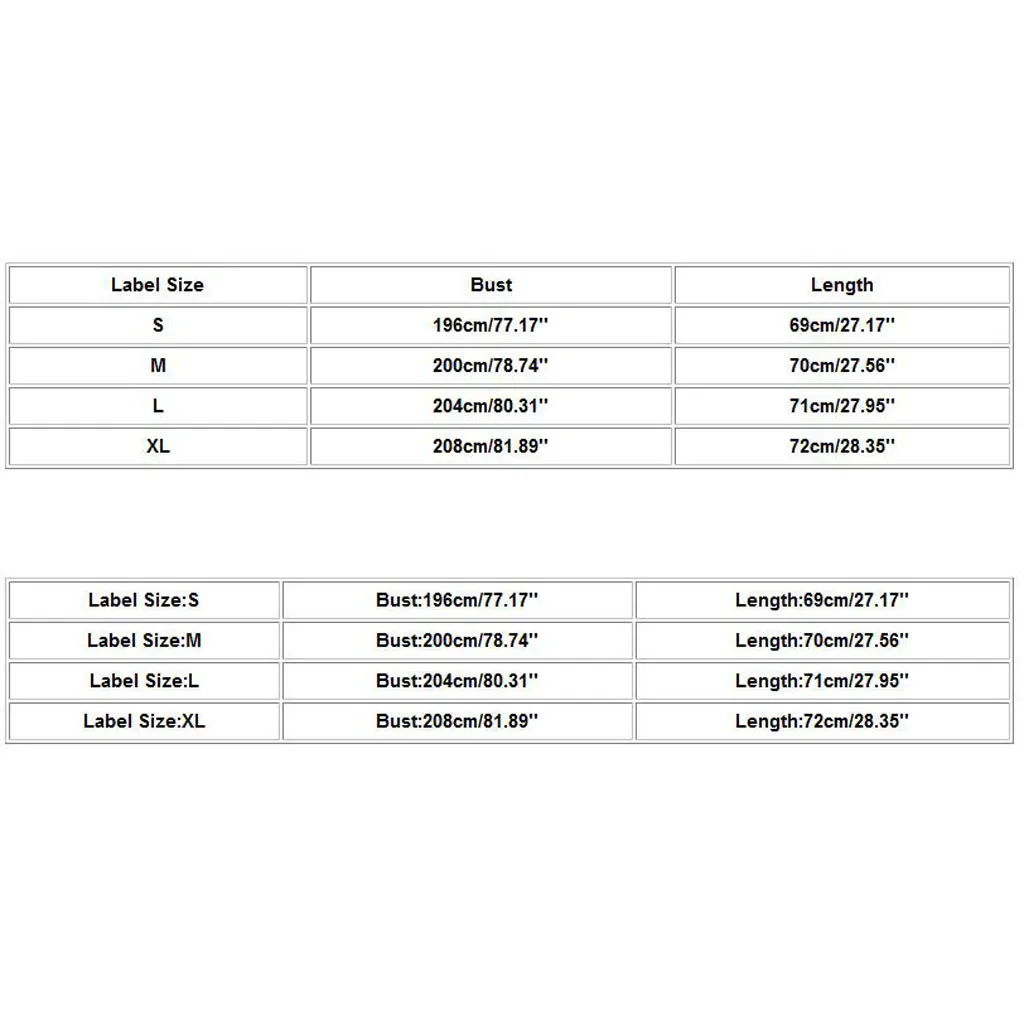 Этикетка РазмерыОбхват грудиДлинаS196 см/77,17''69 см/27,17''М200 см/78,74''70 см/27,56''L204 см/80,31''71 см/27,95''XL208 см/81,89''72 см/28,35''