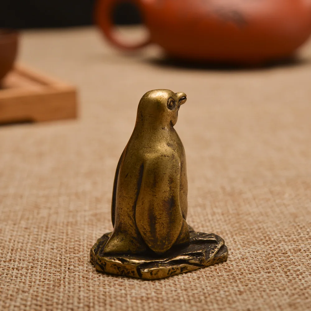 Антикварные медные милые фигурки пингвинов ремесла украшения чайная церемония аксессуары винтажные латунные животные настольные украшения