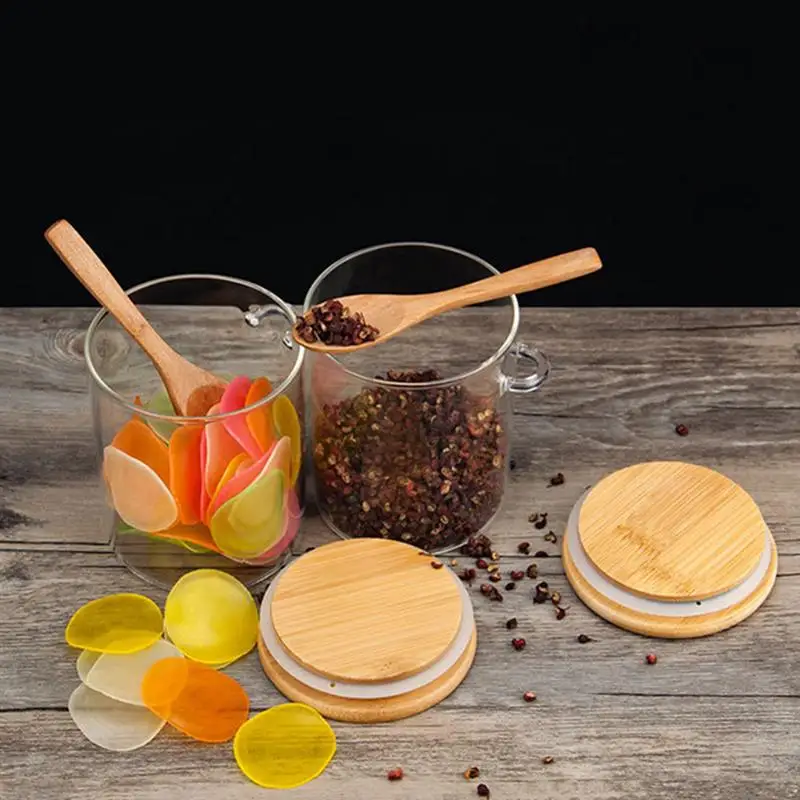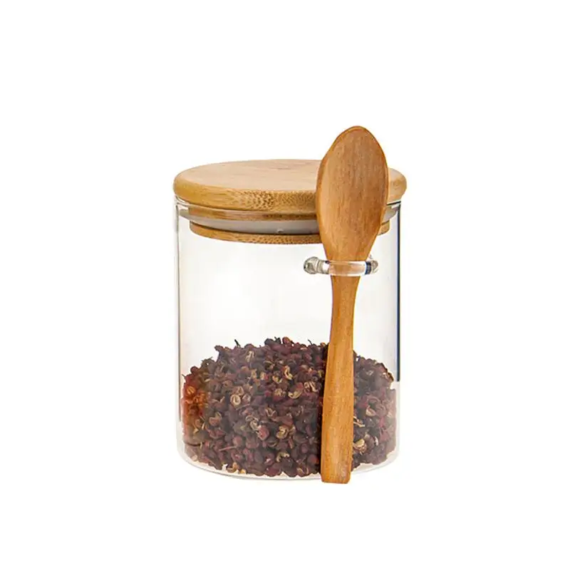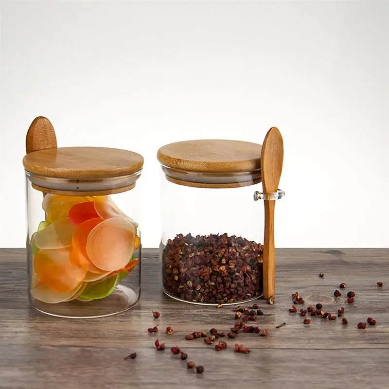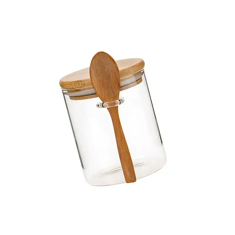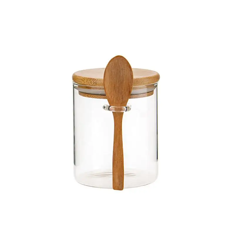 1 шт. стеклянная банка, прозрачный контейнер для хранения пищевых продуктов, герметичный контейнер с крышкой и ложкой для сыпучего чая, соли, сахара, кофейных зерен