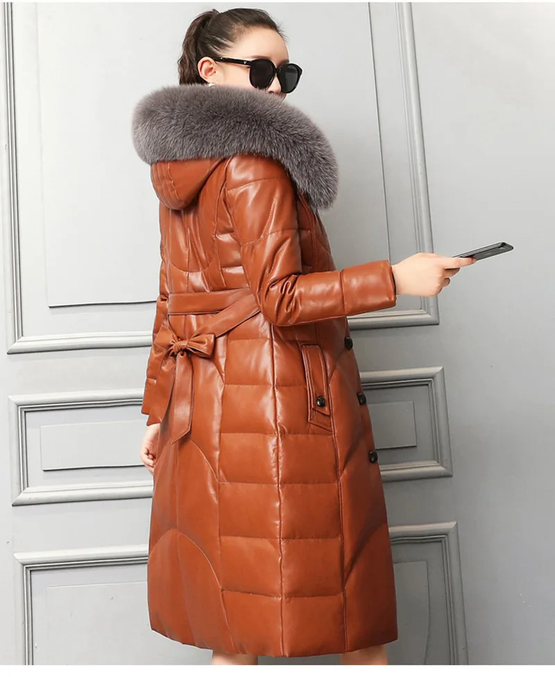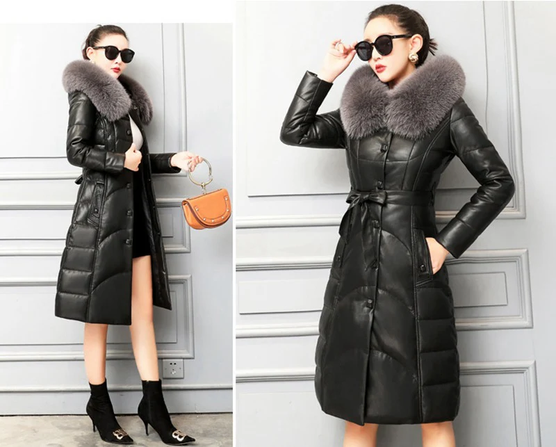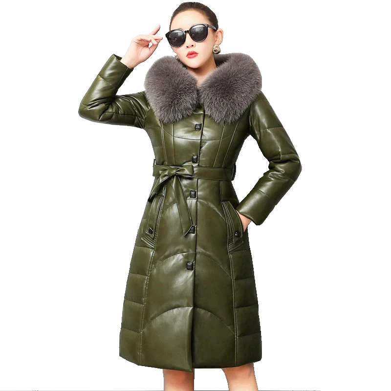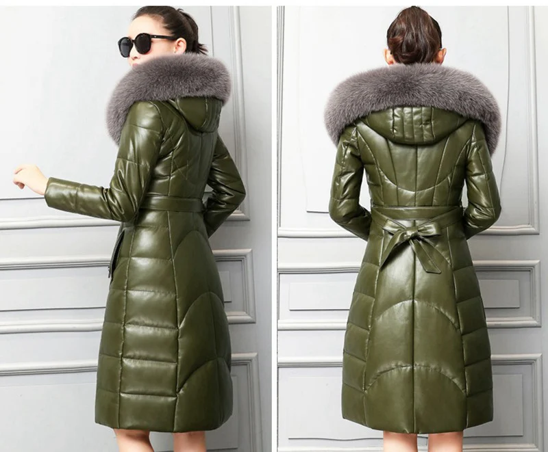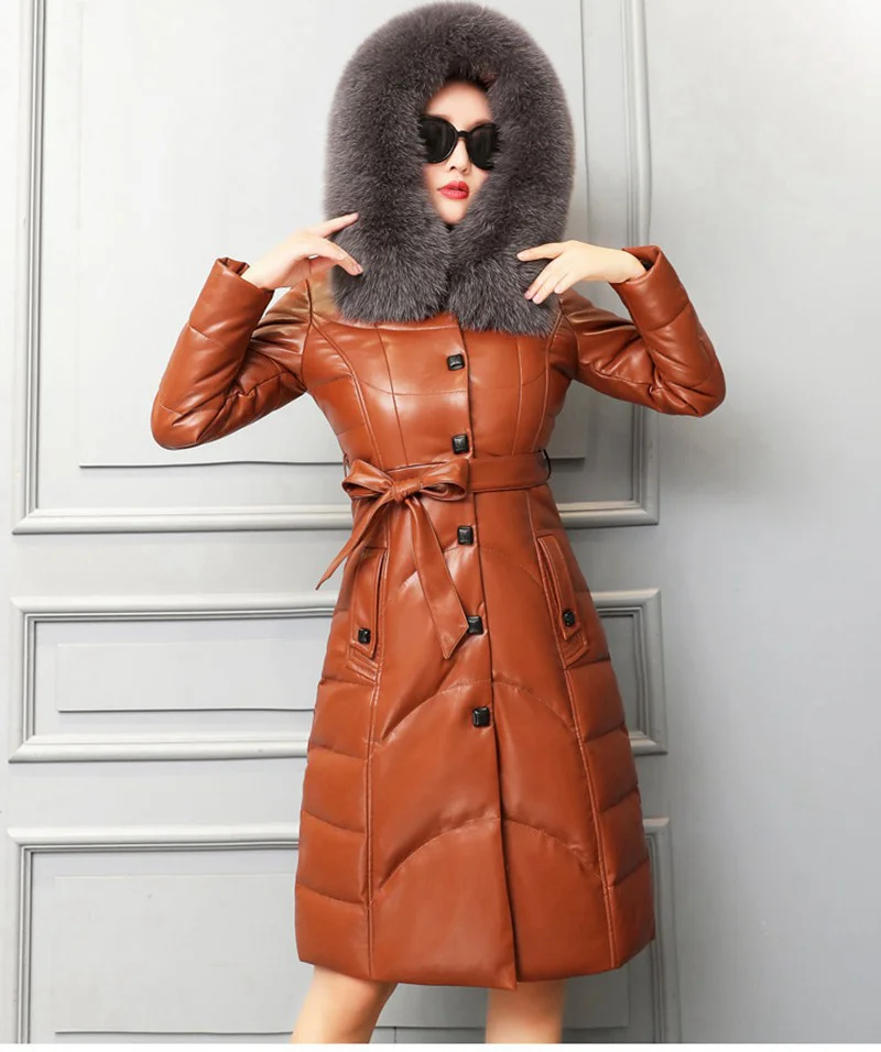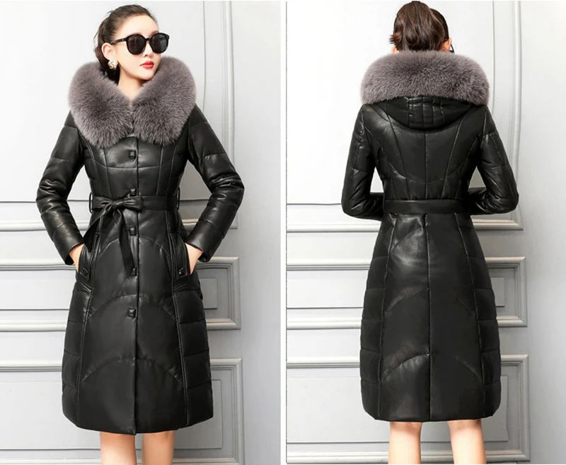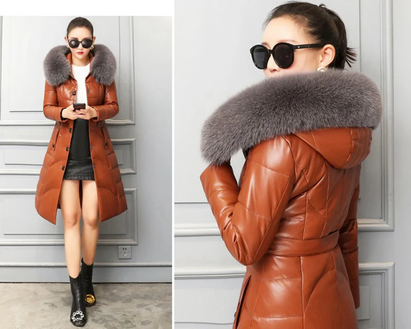 Пуховые парки из натуральной овечьей кожи с капюшоном из лисьего меха