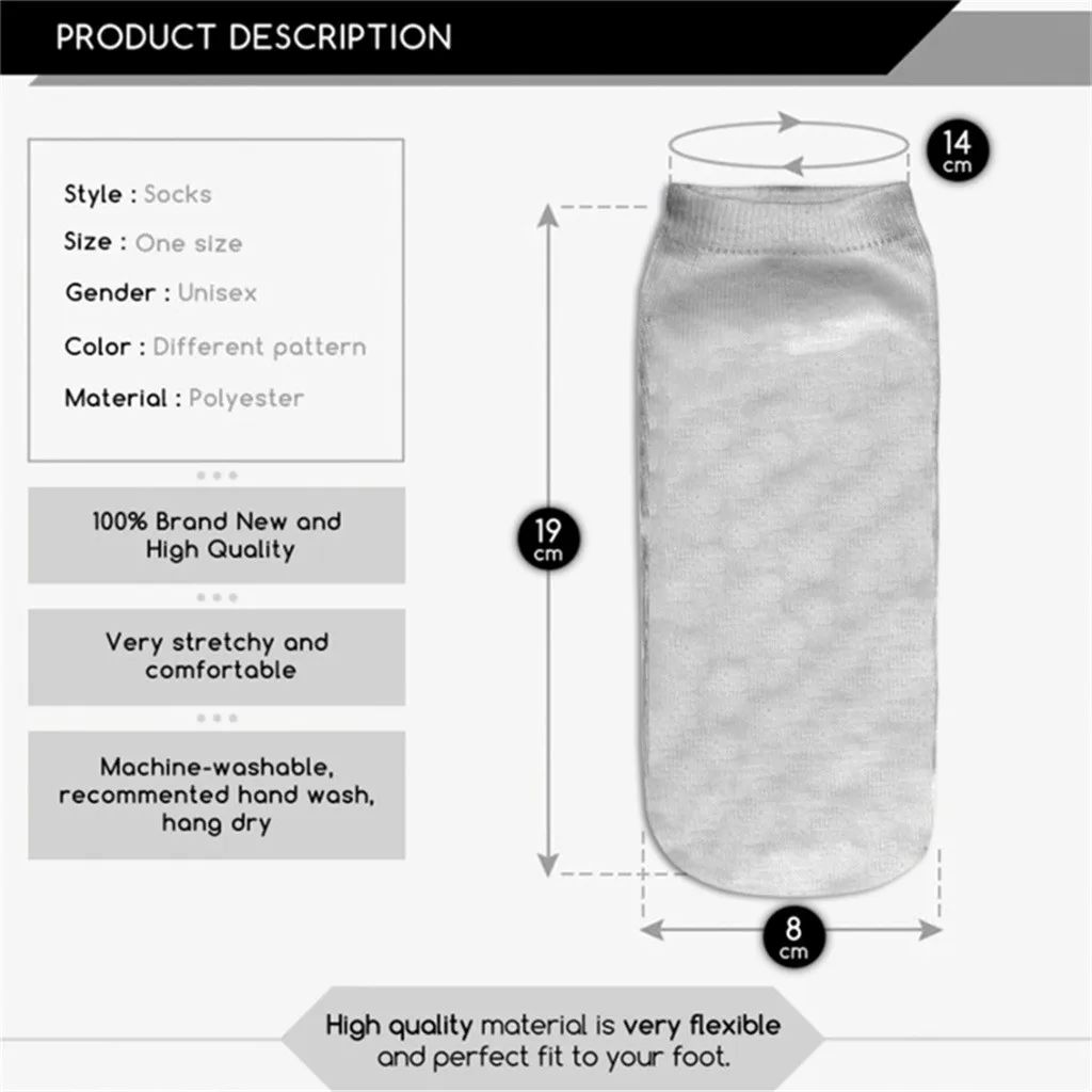 Цвет: например, фотография (каждая пара носков печатается при температуре выше 240 градусов, не выцветает и не выцветает)