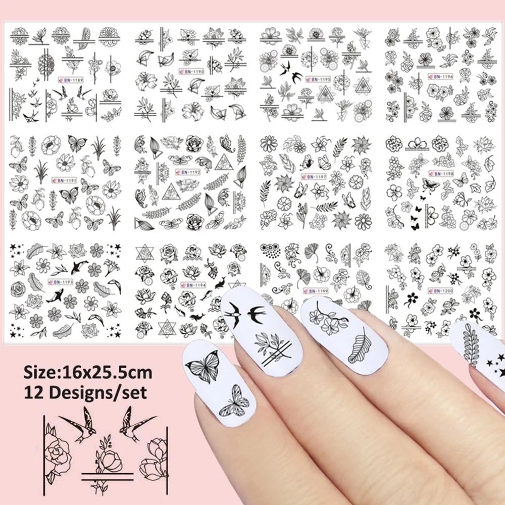 Тип товара: наклейка и наклейка Количество: 12 Дизайнов/листов Размеры: 16x25.5cm Узор: черный лепесток цветка розы Стиль: DIY слайдер для переноса воды Упаковка: 12 видов конструкций/набор переводных наклеек для ногтей Способ применения 1. Обрезать, очистить и полировать ногти; Покрасить цвет фона на ногтях и высушить его. 2. Снимите пленку продукта, Вырежьте похлопыватель и погрузите ее в воду 10-20 секунд. 3. Смочите ногти, приклейте Паттер в положение. 4. Промойте воду бумажным полотенцем и высушите. 5. Крышка с прозрачным лаком для ногтей и высушить.
