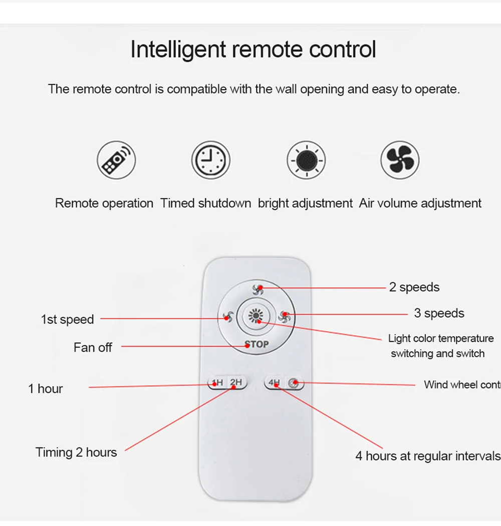 1. Дистанционное управление 2. Сроки 3. Яркая регулировка 4. Регулировка объема воздуха