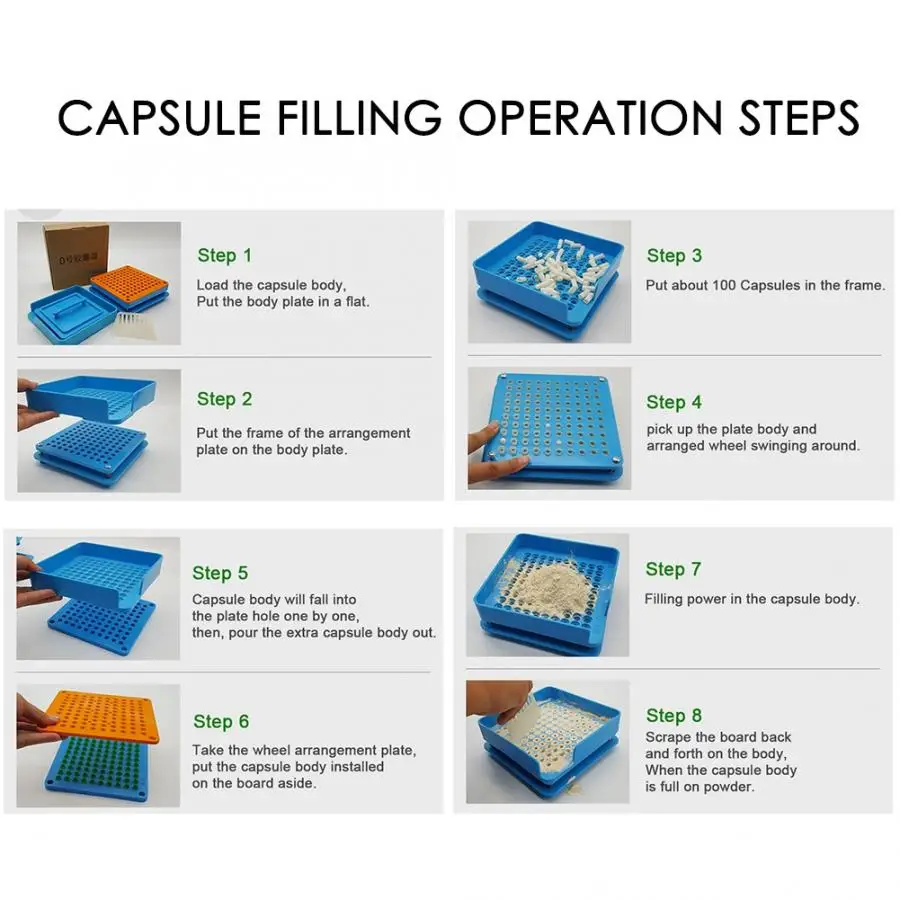 Имитирует автоматическое механическое расположение, вы можете организовать капсульные крышки и капсульные тела быстро, более удобно использовать и улучшить эффективность наполнения капсул.