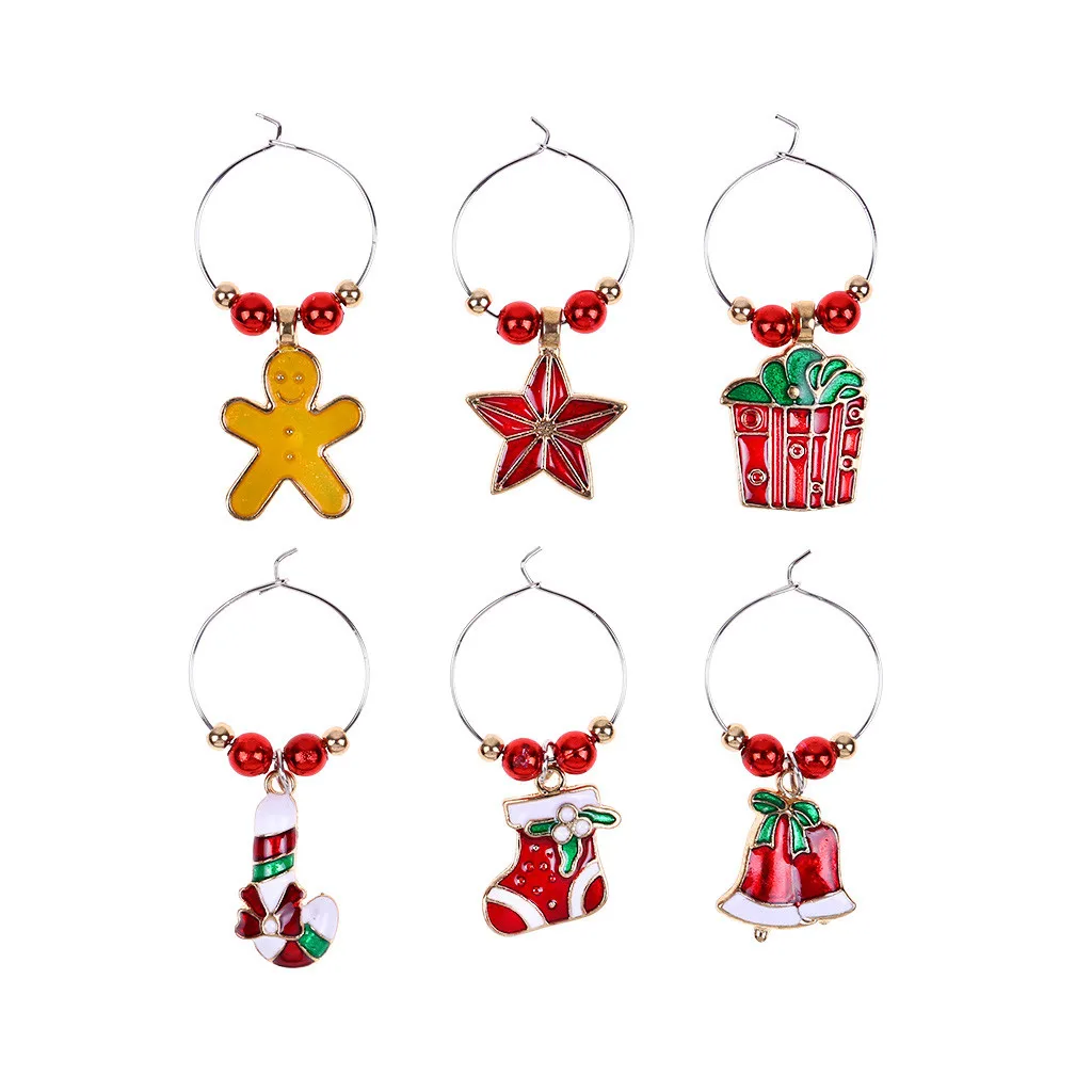 6 шт. Рождественский декоративный бокал для вина круг Рождественская атмосфера Кубок декоративное кольцо подвеска Гламурные вечерние новогодние чашки