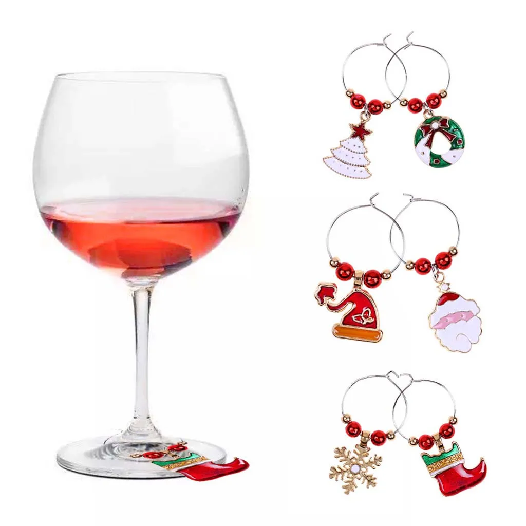 Индивидуальное Рождественское украшение: 6 различных стилей колец для Винных Бокалов, каждый из которых уникален, очаровательен и гламурен, способен быстро идентифицировать ваши бокалы для вина и внести свой вклад в праздничную атмосферу