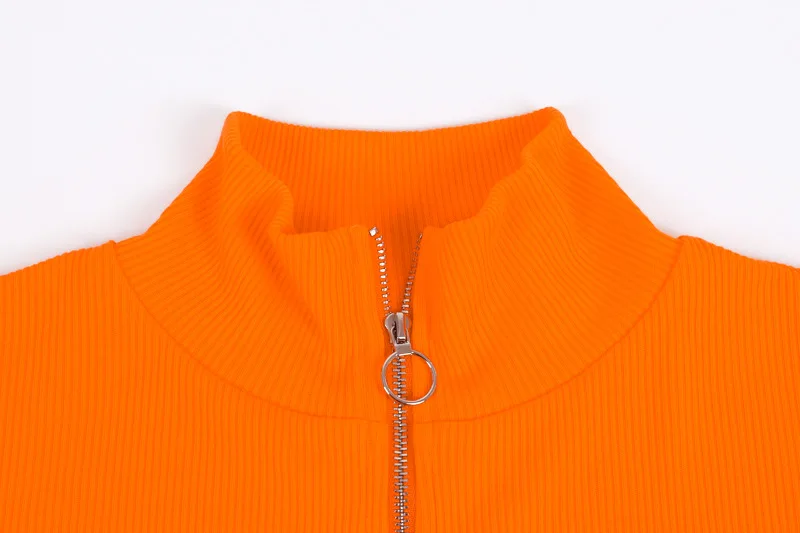 Женская короткая Укороченная блуза с длинным рукавом на молнии, однотонный сексуальный тонкий Топ