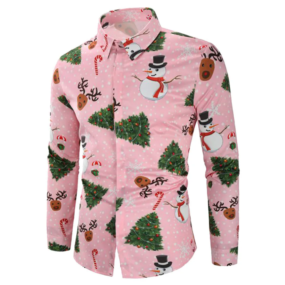Снежинка Цветок печатных Мужская рубашка Повседневная снег мужчин Санта Клаус Лось печать Рождество