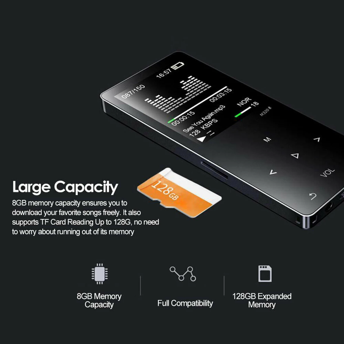 Портативный mp3-плеер SOONHUA, цифровой Hi-Fi музыкальный плеер, мини BT MP3 диктофон, fm-радио с зарядным кабелем и наушниками