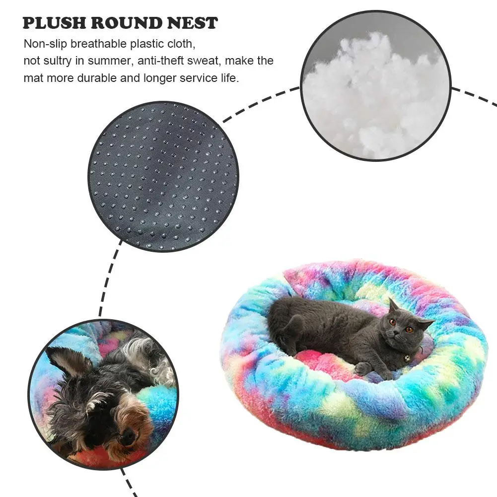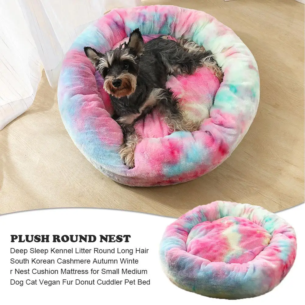 Питомник Собаки круглый кошка осень зима теплый спальный мешок длинный плюшевый супер мягкий питомец кровать щенок подушка коврик Портативные товары для питомцев