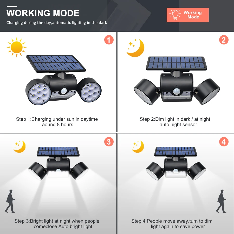 3. Если в течение 3 месяцев нет хорошего солнечного света, аккумулятор может быть отключен, вы должны зарядить его ярким солнечным светом, когда он полностью заряжен, он может нормально функционировать.